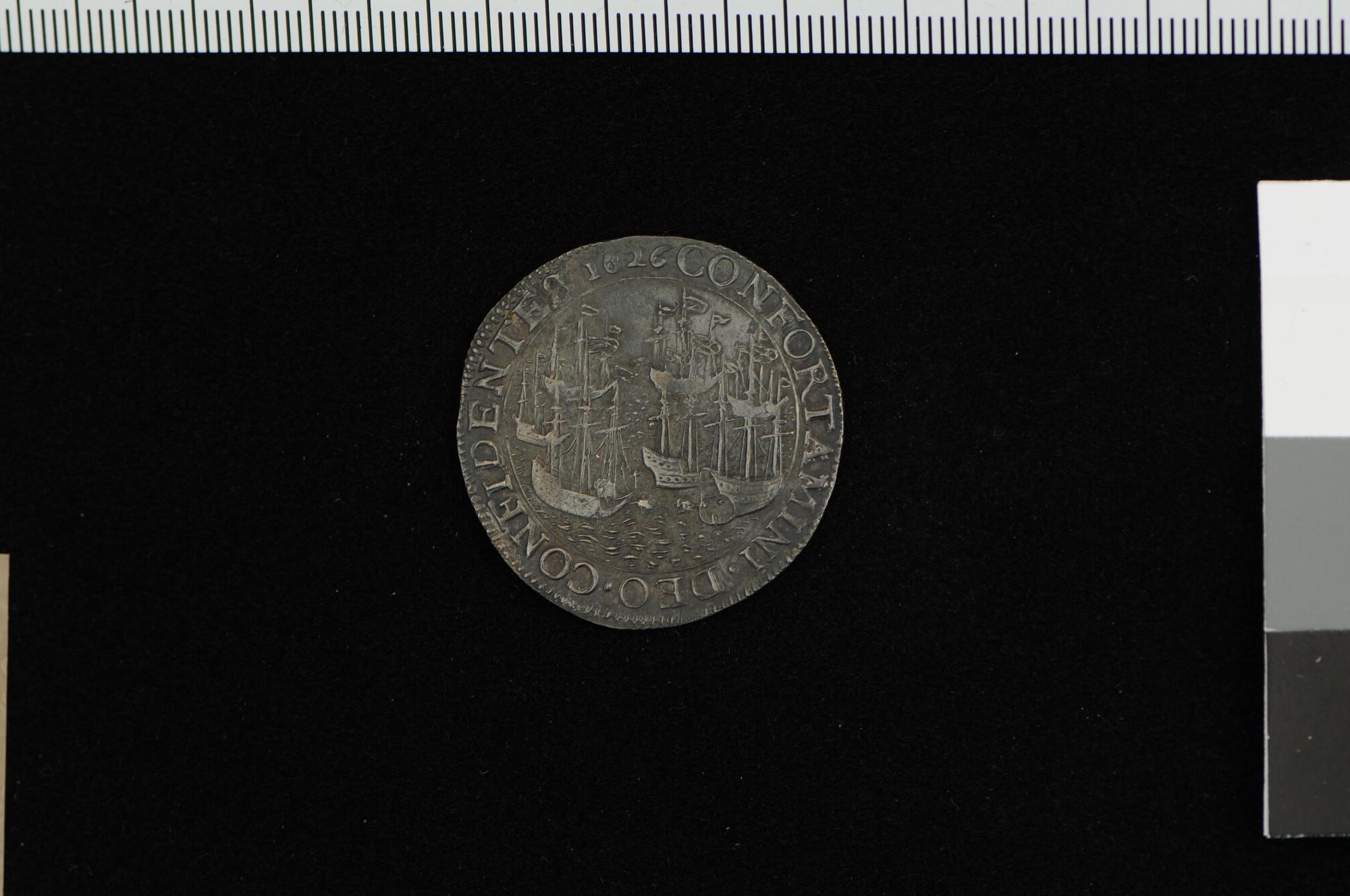 Rekenpenning van Utrecht geslagen ter herinnering aan de tegenspoed van de Nederlanden in de strijd tegen Spanje, 1626.