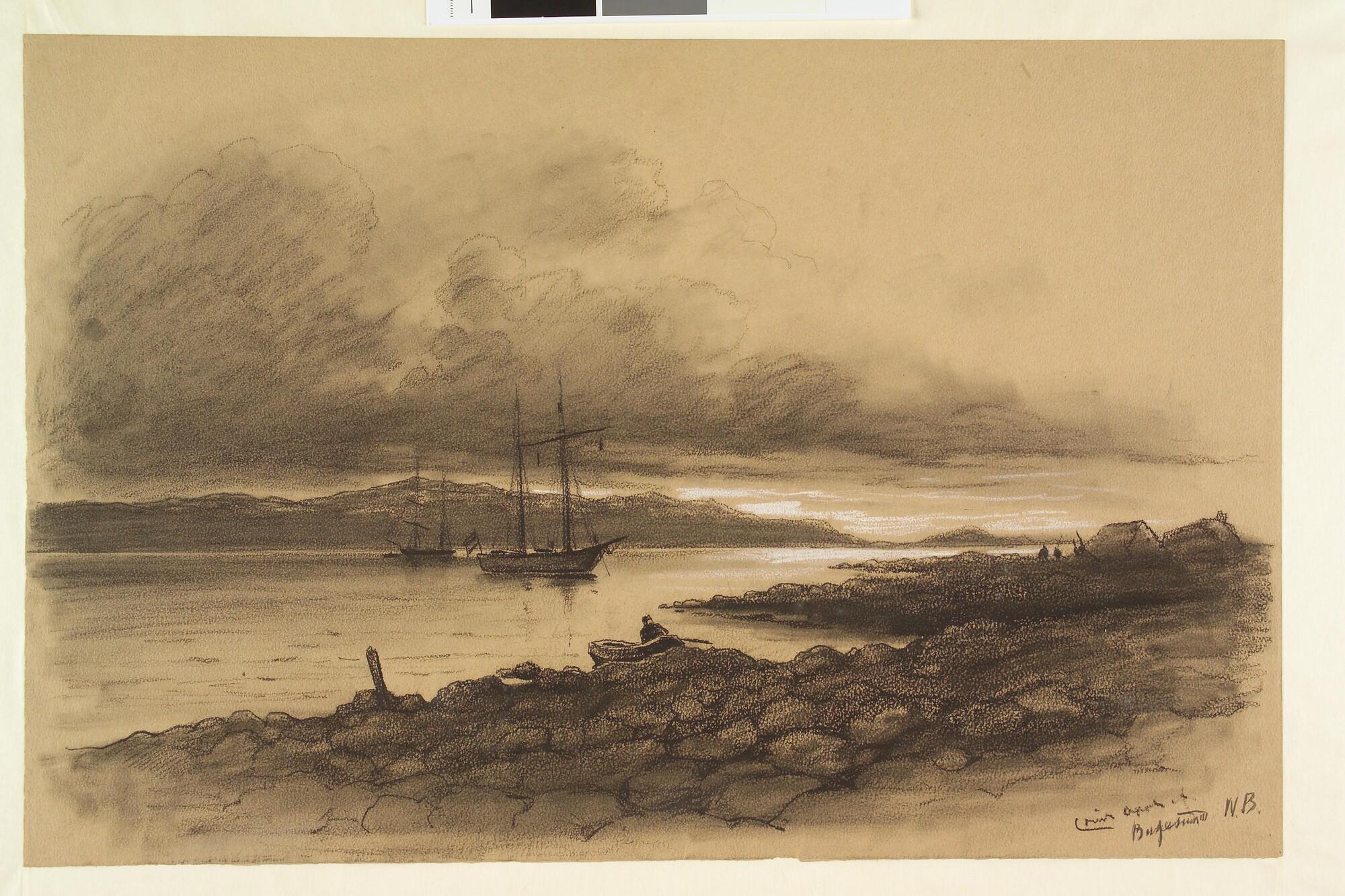 De schoener "Willem Barents" voor anker liggend in de Bagesund (Noorwegen).