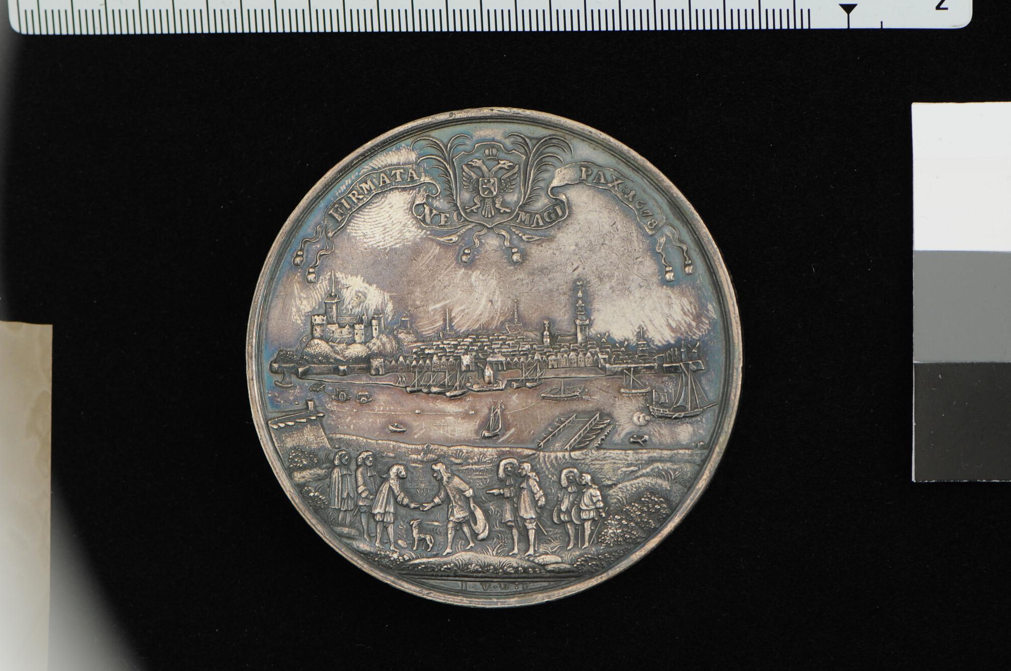 Penning op de vrede van Nijmegen, gesloten tussen de Republiek der Verenigde Nederlanden en Frankrijk, 1678.