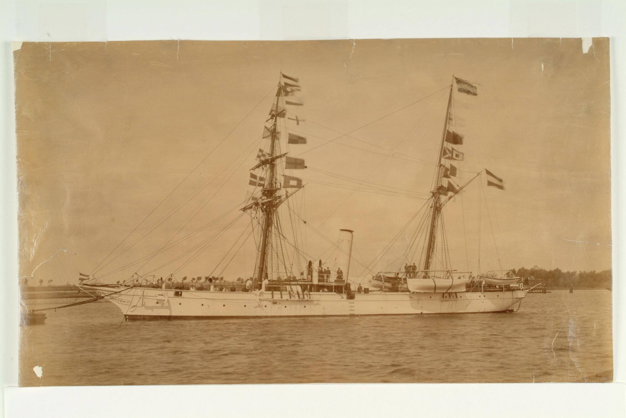 Twee foto's van het schroefstoomschip 4de klasse Hr.Ms. 'Ceram' gebouwd in 1886