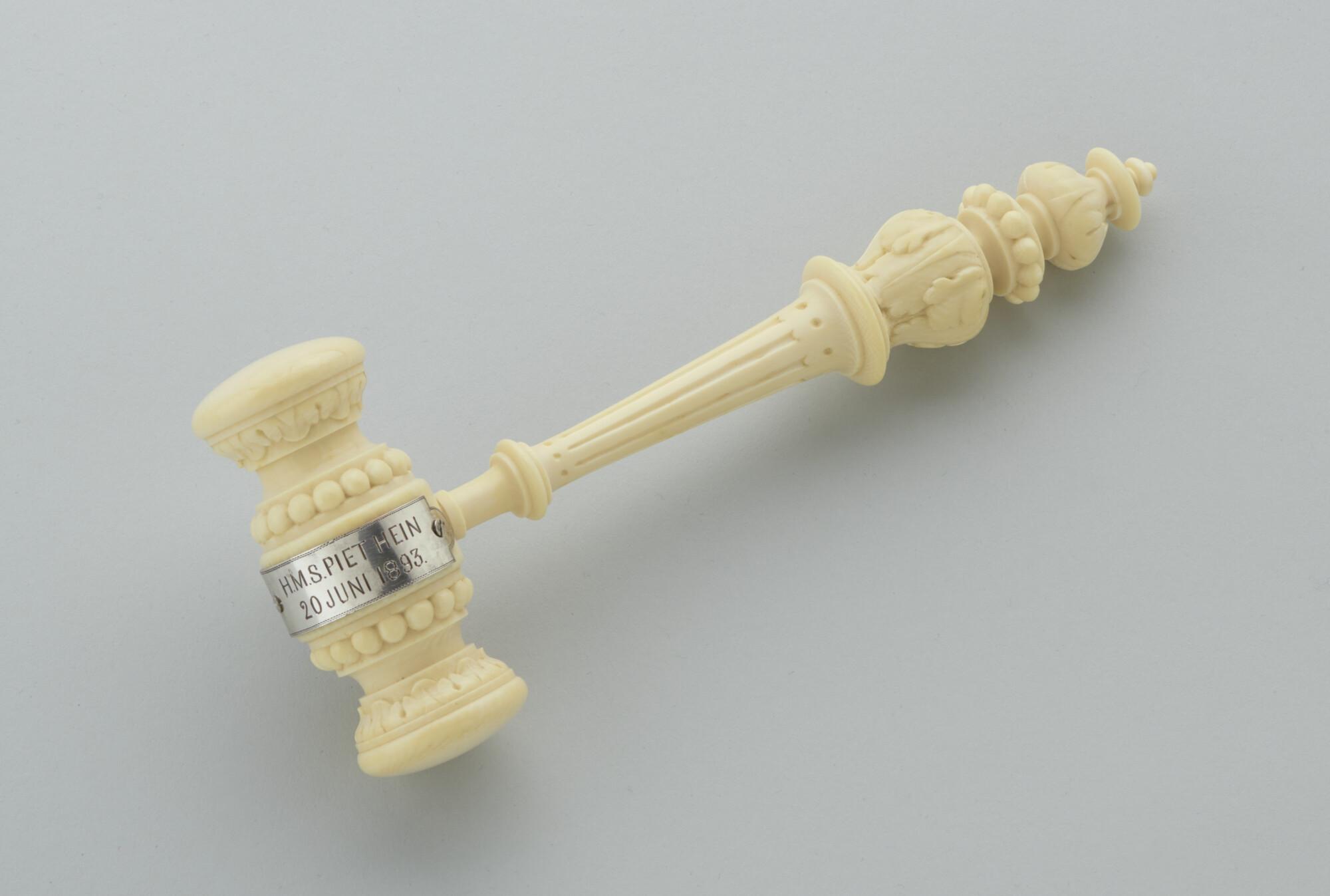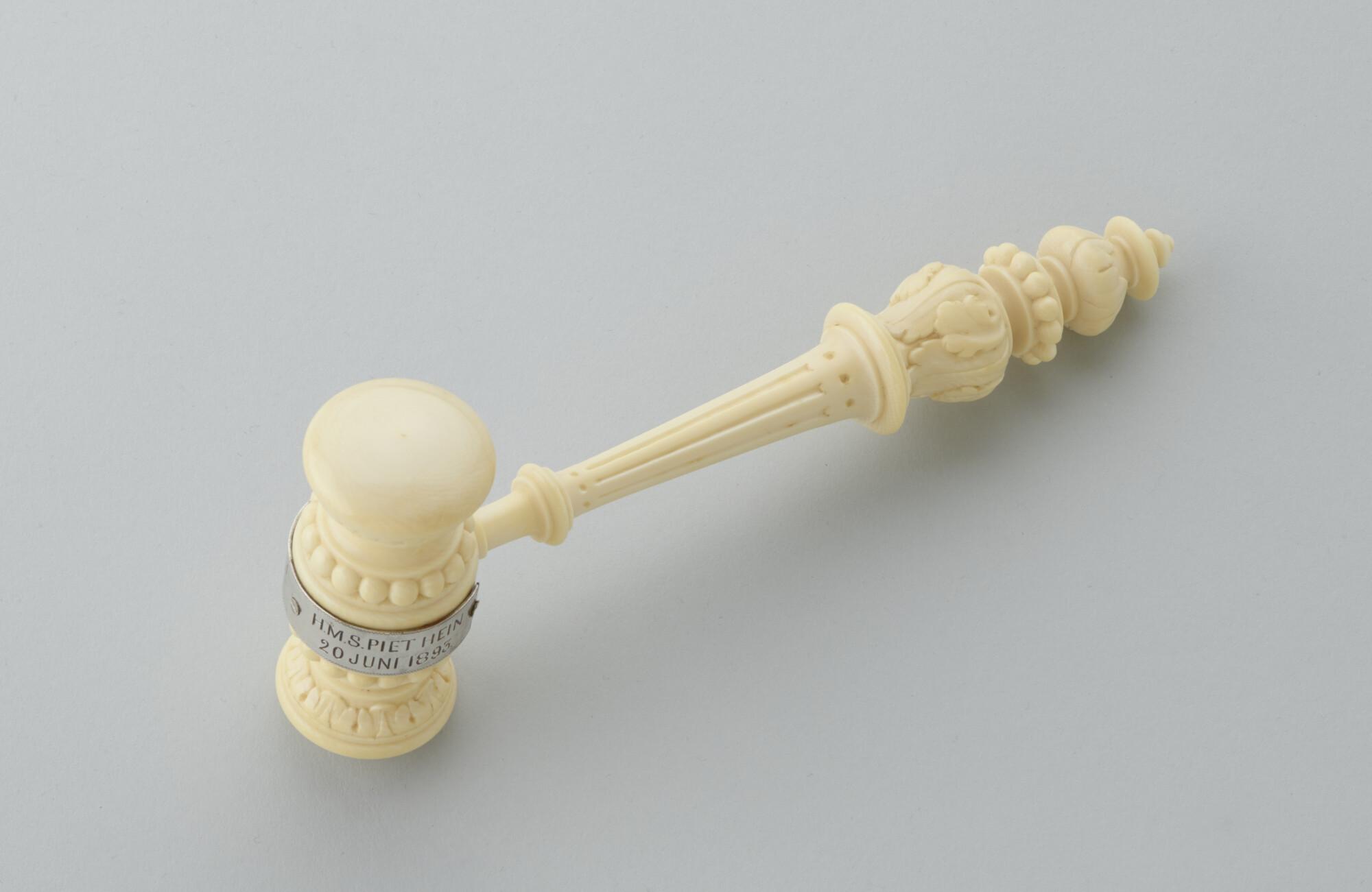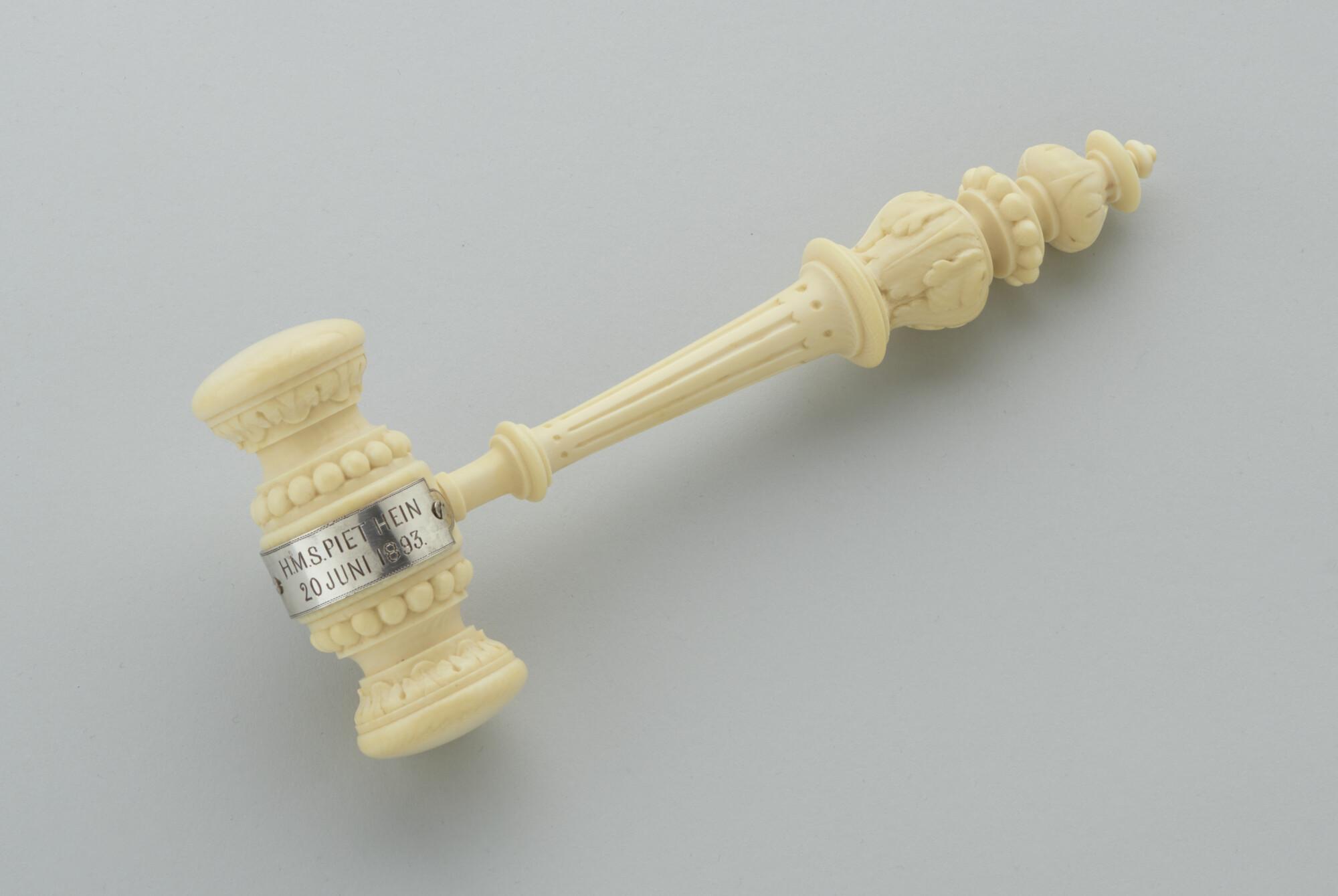 Herdenkingshamer van ivoor, gebruikt bij de tewaterlating van de Hr.Ms. Piet Hein op 20 juni 1893