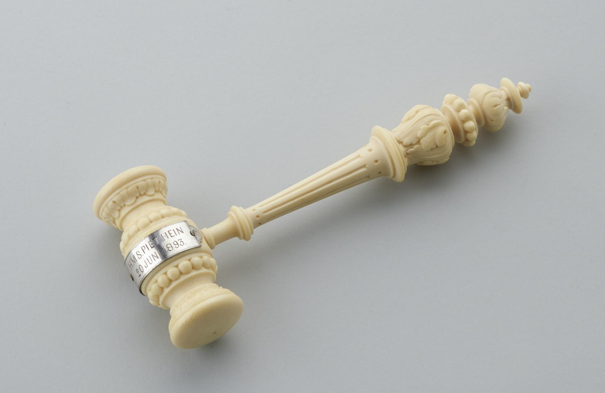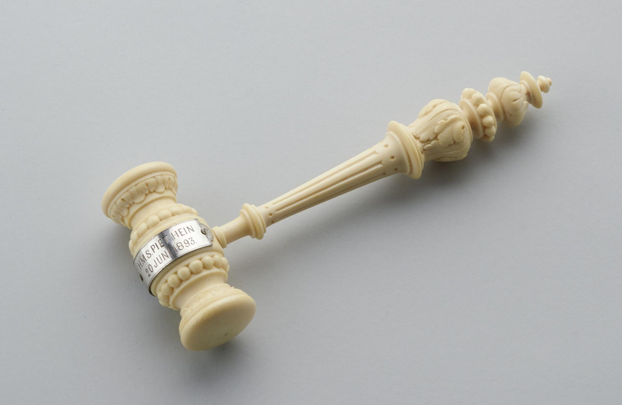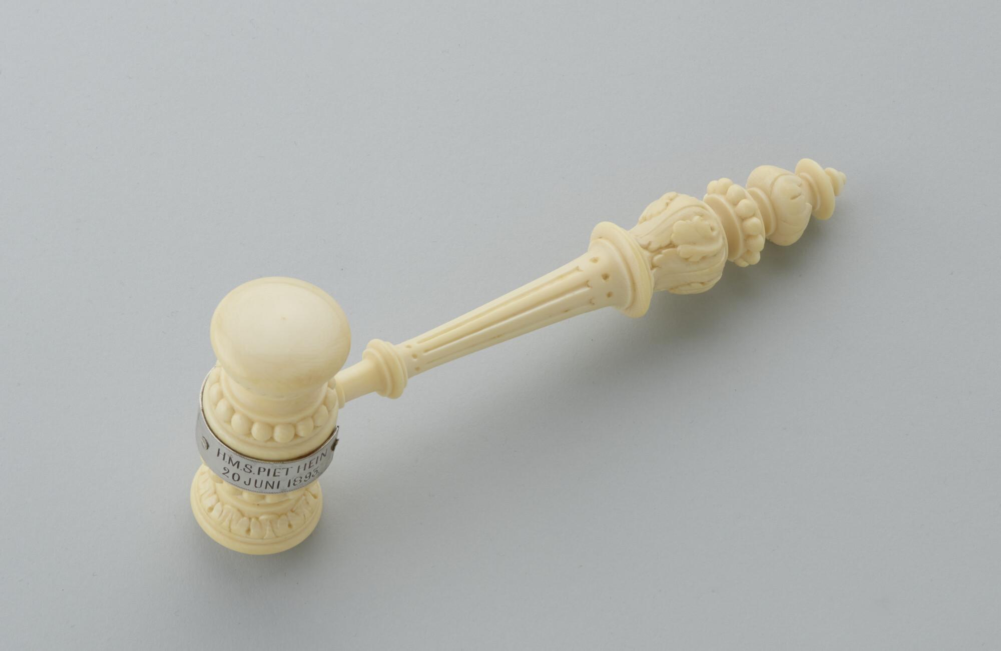 Herdenkingshamer van ivoor, gebruikt bij de tewaterlating van de Hr.Ms. Piet Hein op 20 juni 1893