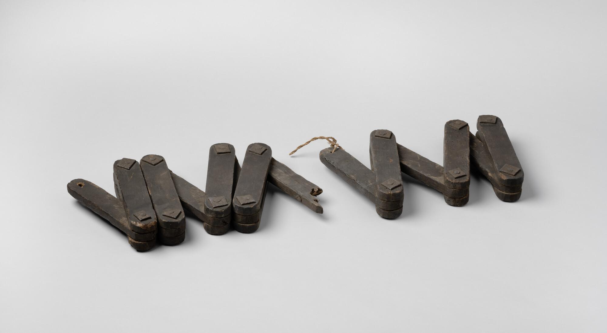 Dit gereedschap bestaat uit geledingen; werd gebruikt in de hout scheepsbouw om de inwendige vorm van kleine schepen over te nemen. Het instrument werd door de schenker gevonden op een oude scheepswerf in Kiel Windeveer te Groningen. Met plank.