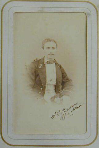 Portretfoto van officier van administratie der derde klasse J.G. Bebelaar (1840-1903)