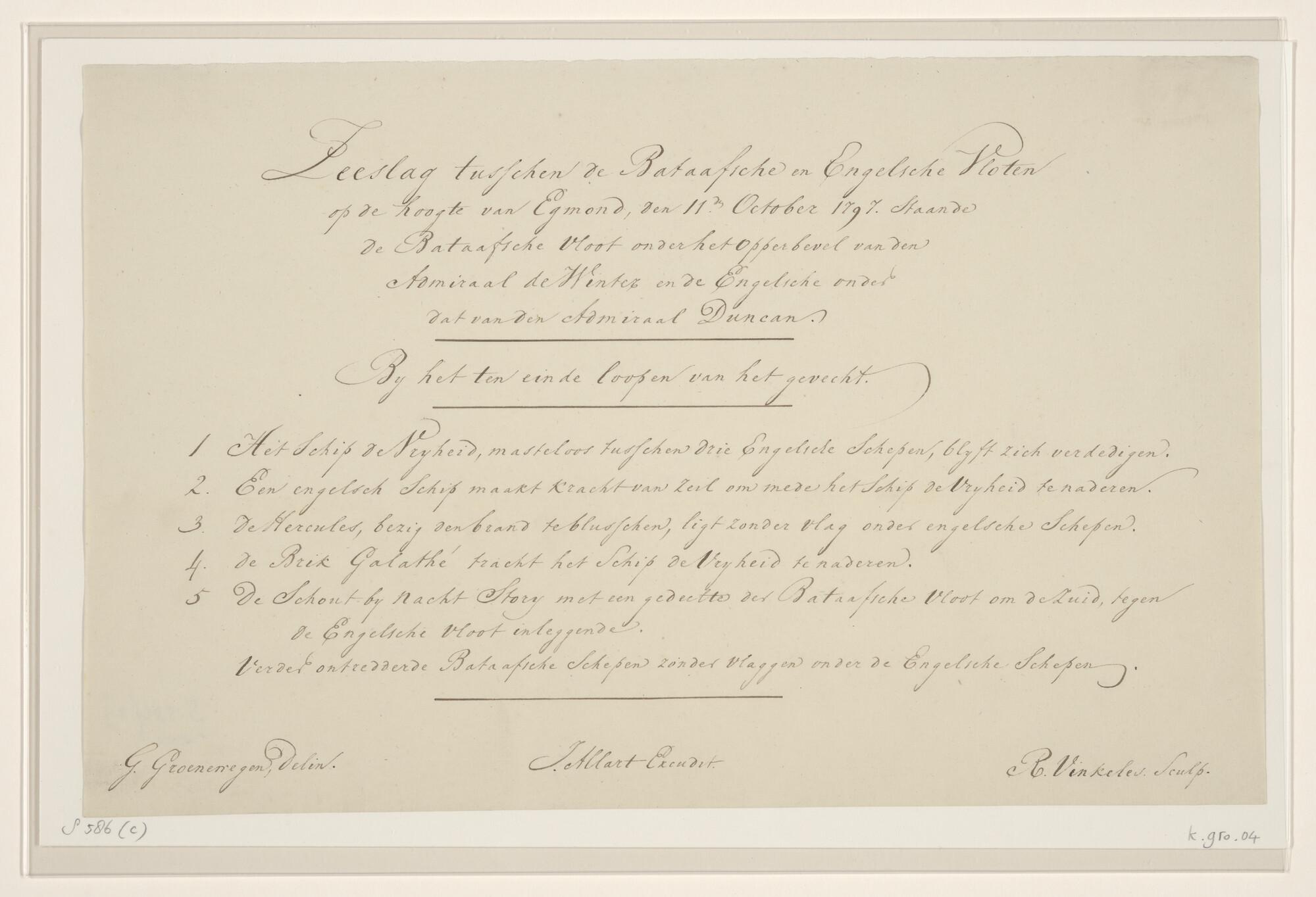Tekst over de zeeslag tussen de Bataafsche en Engelse vloten