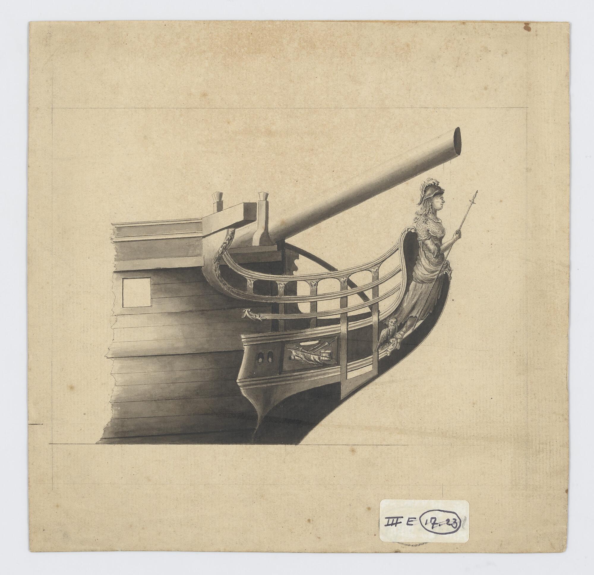 Afbeelding van scheg- en spiegelversieringen van een schip