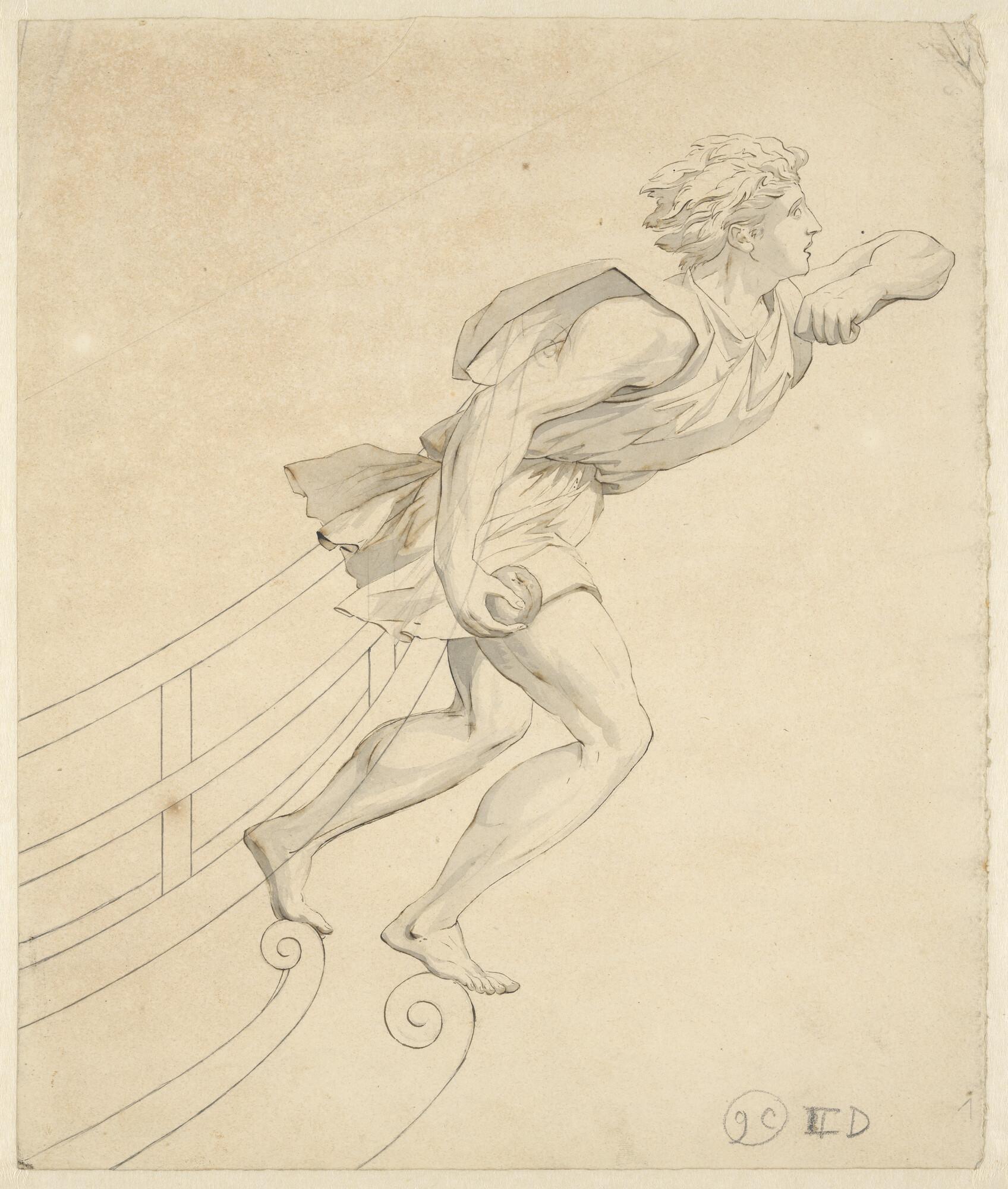 Scheg met schegbeeld van een jonge man met gouden appel in de rechterhand.