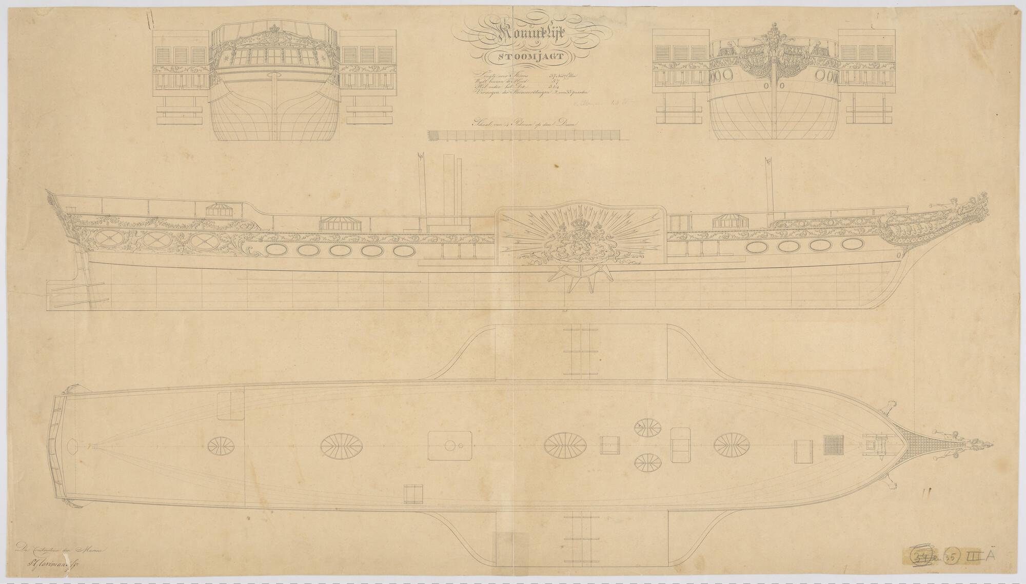 Lijnenplan van het koninklijk raderstoomjacht 'De Leeuw' 1826