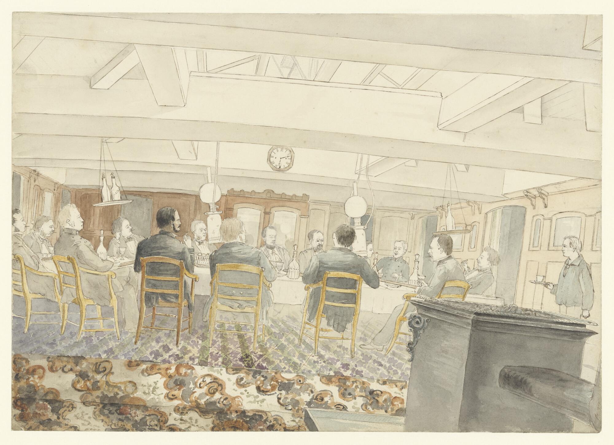 Bitteruurtje in de longroom aan boord van een Nederlands oorlogsschip met lichte slagzij