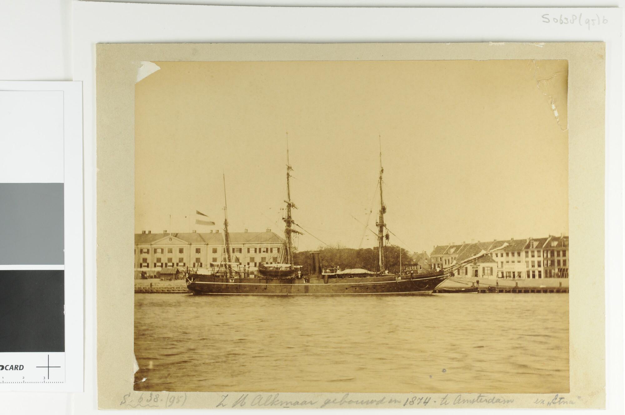 Het schroefstoomschip 3de klasse Zr.Ms. 'Alkmaar' ligt afgemeerd aan de kade