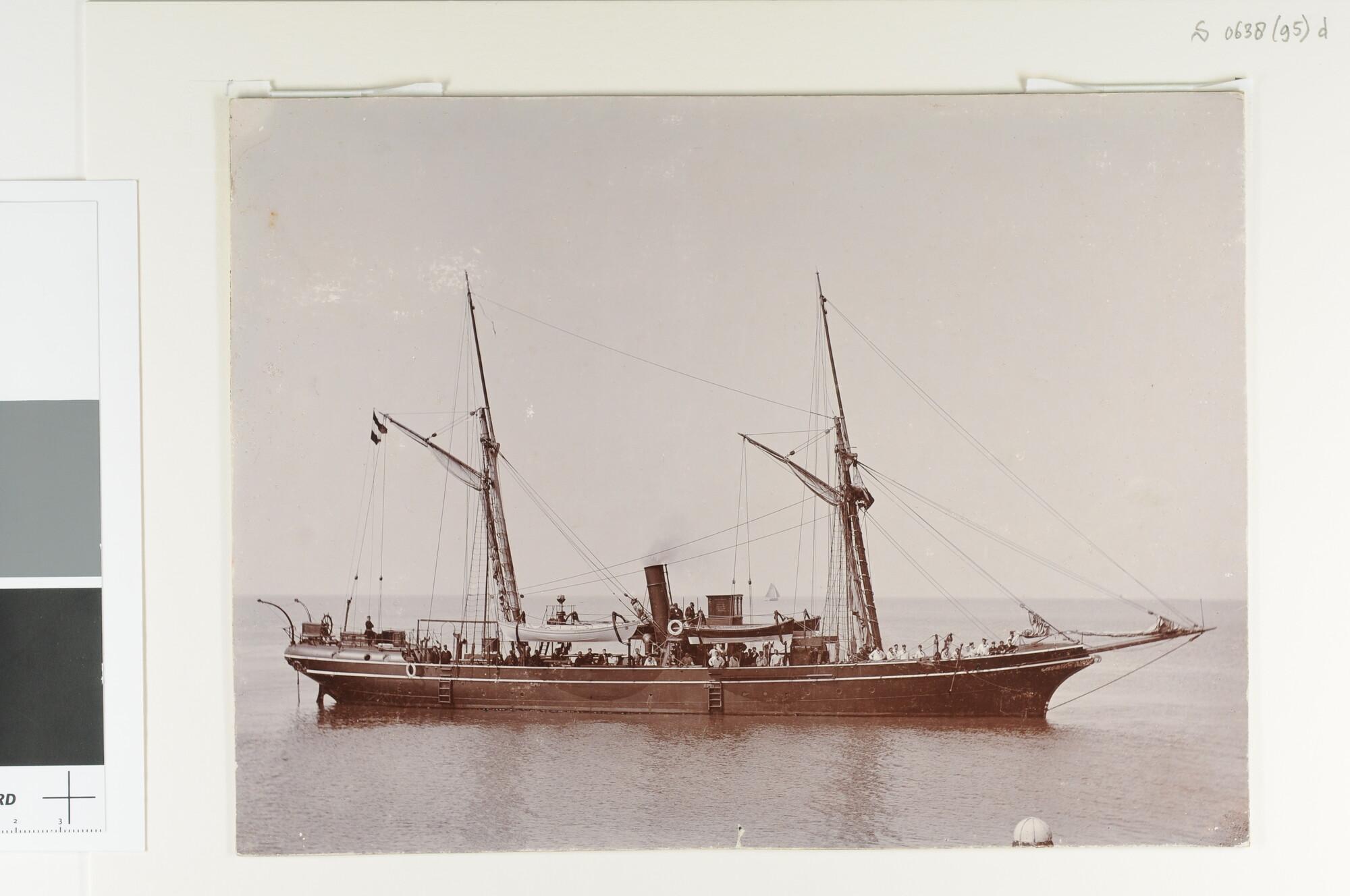 De schoener voor politietoezicht op de visserij "Dolfijn", gezien vanaf een steiger in de buurt van Den Helder.