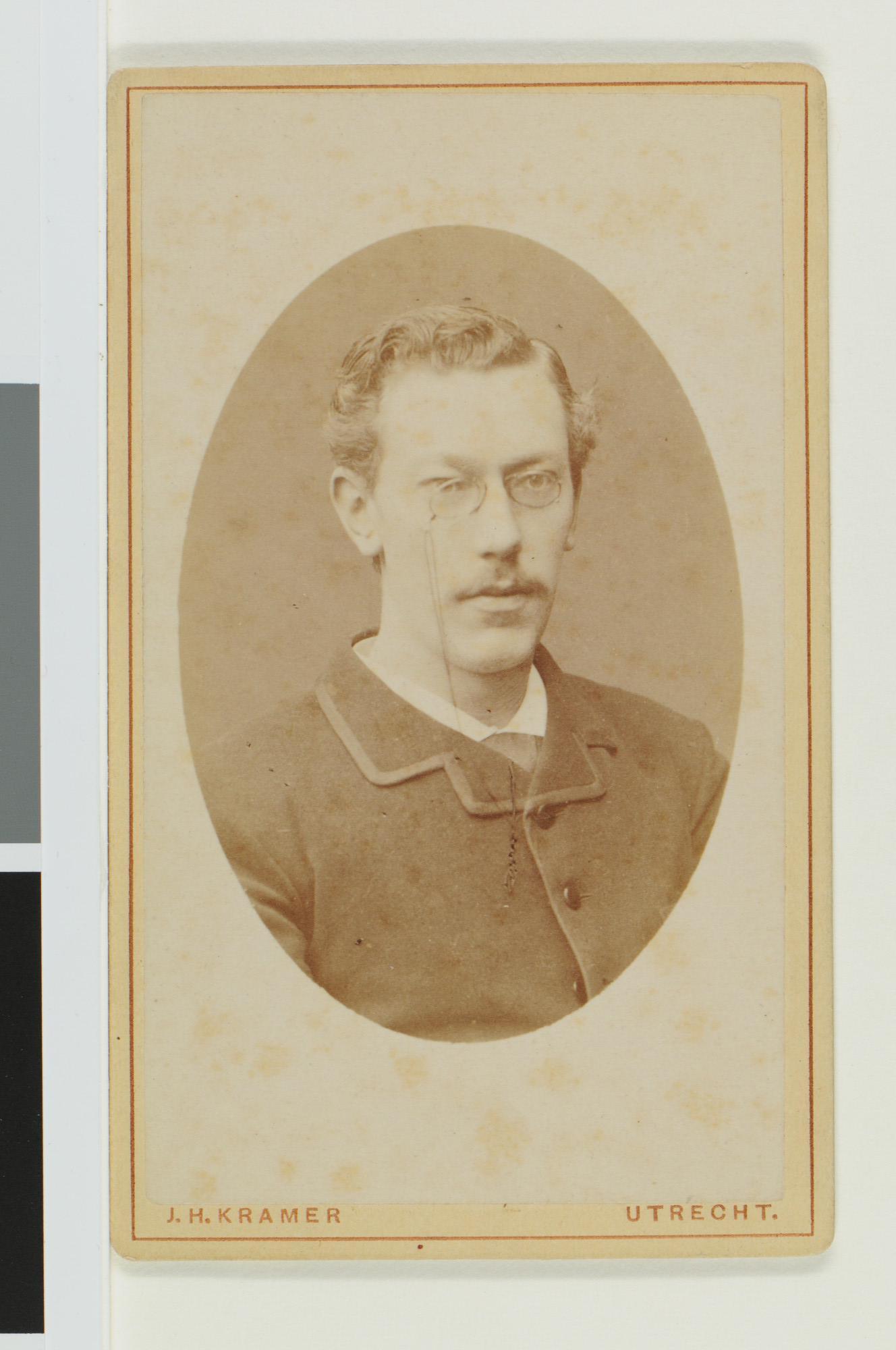 Portretfoto van J.J. Scheltema, kandidaat medicijnen. Zoöloog tijdens vijfde tocht van de "Willem Barents" in 1882.
