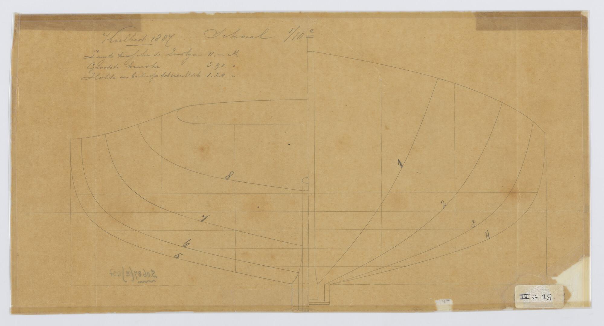 Grootspanttekening midzwaardjacht 1887