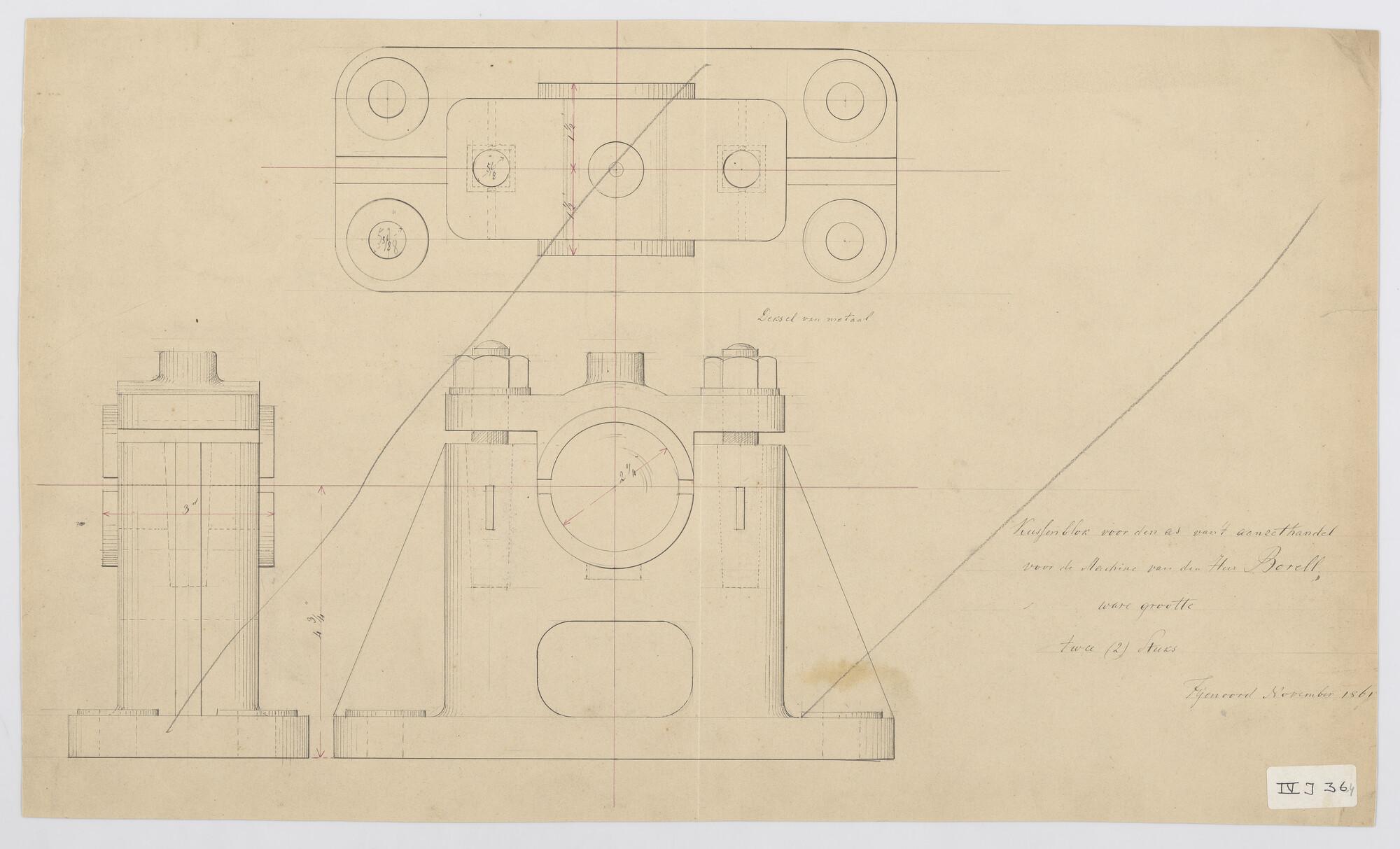 Zijaanzicht, bovenaanzicht, verticale langsdoorsnede en horizontale langsdoorsnede van een gewapende houten uitlegger No. 2.