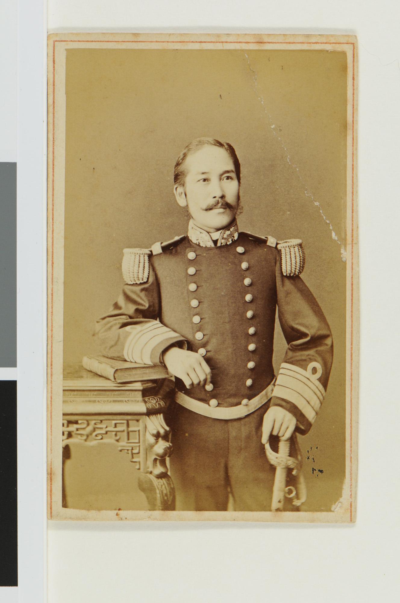 Portretfoto van Enomoto Kamajiro (Takeaki) (1836-1908), officier der eerste klasse van de Japanse marine.