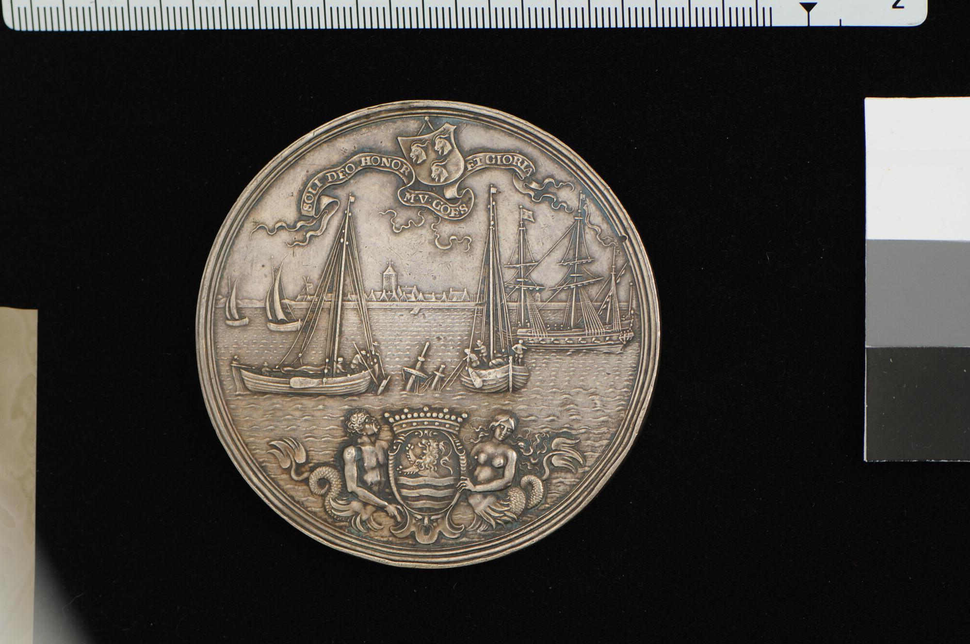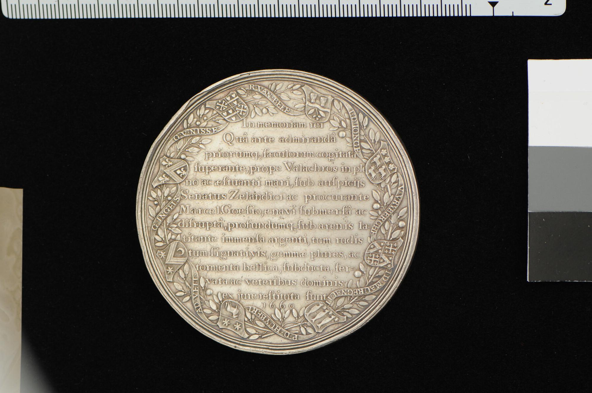 Penning op het redden van goederen uit het gezonken schip Waterdrinker, geslagen op last van de Staten van Zeeland ter ere van de uitvinding van Hans Albrecht von Treileben, 1660.