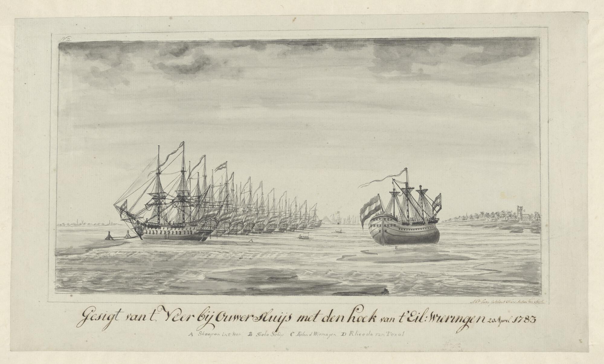 De aanvaring van het oorlogsschip "Vrijheid" met het fregatschip "Pallas" ter hoogte van het eiland Wright op 17 december 1783.