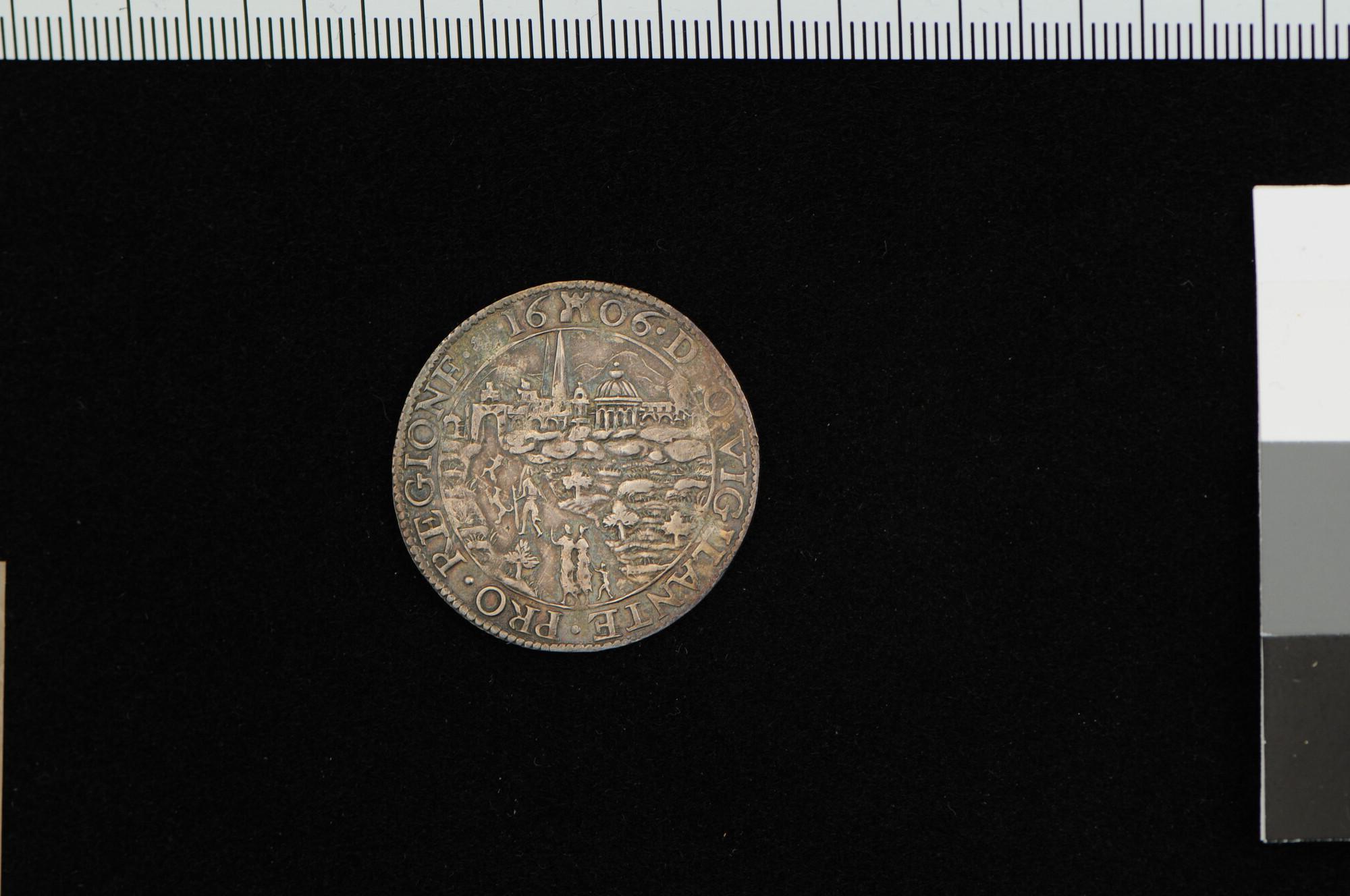 Rekenpenning, geslagen op last van de Staten van Zeeland, op de Goddelijke bijstand aan de opstandelingen, 1606.