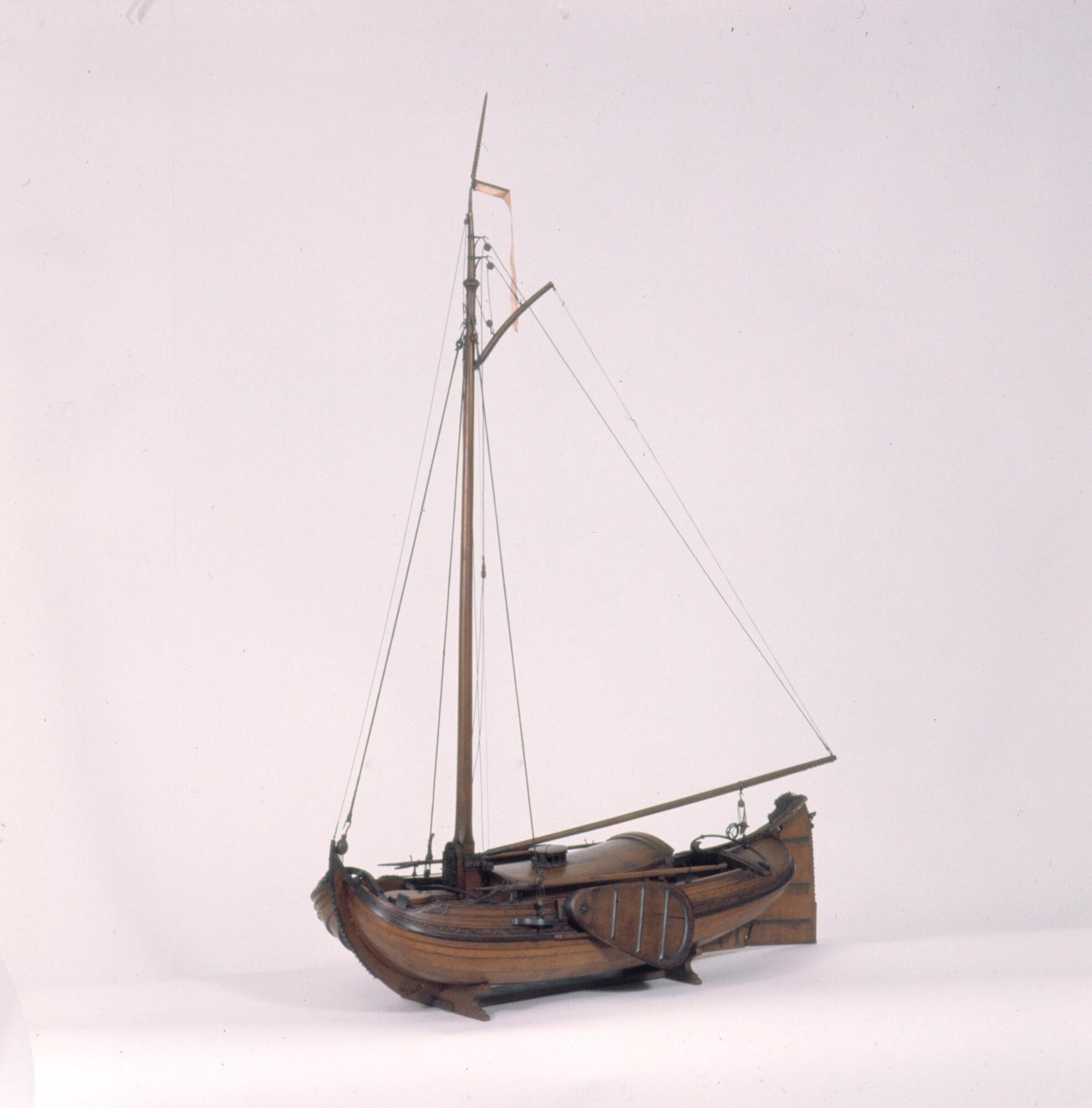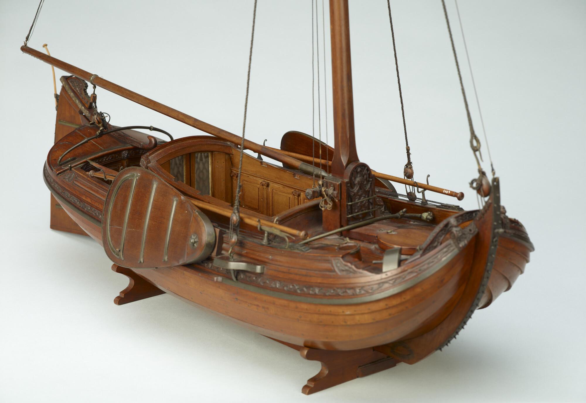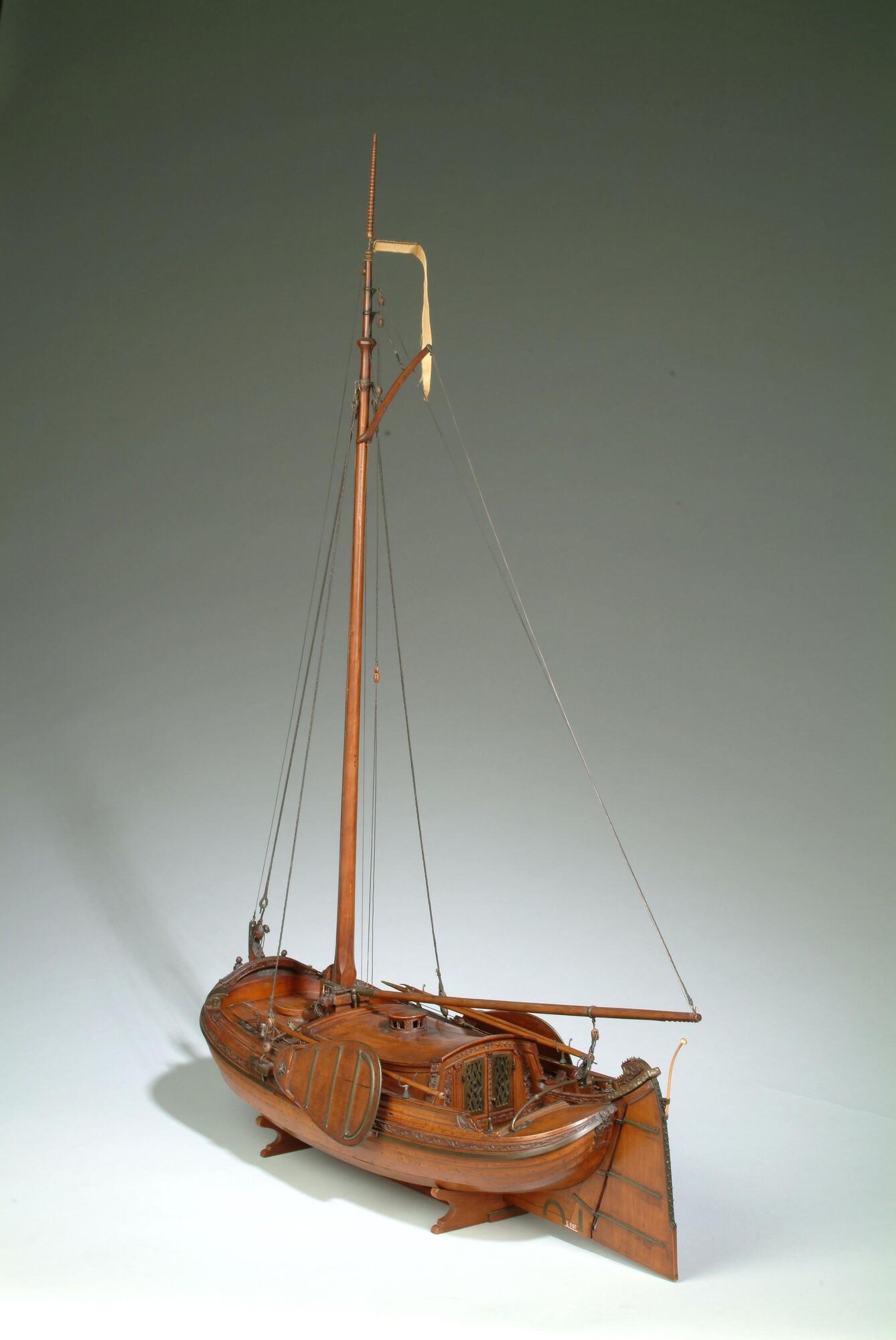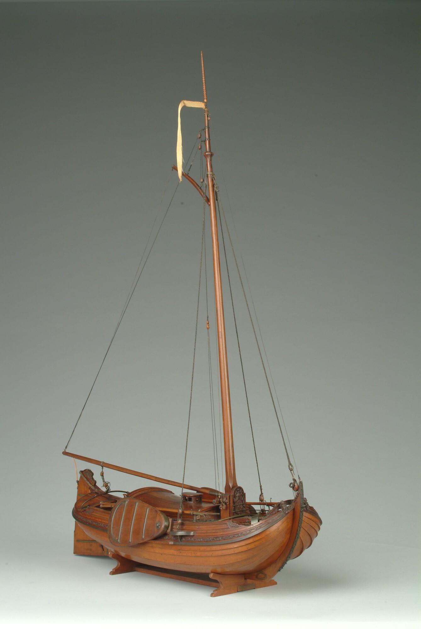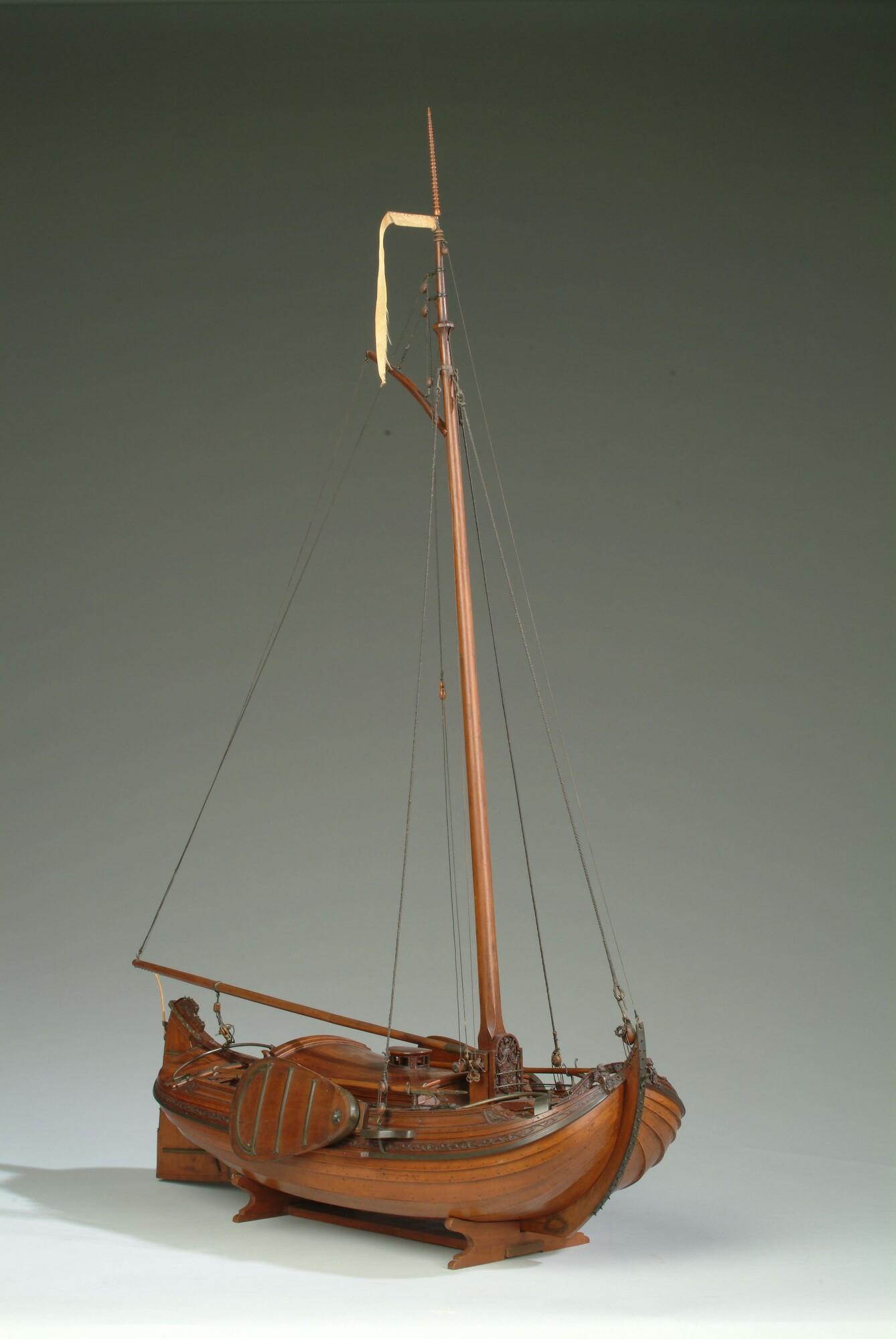 Getuigd model van een overnaadse boeier met een strijkbare mast, gebouwd in 1815 voor de Russische tsaar Alexander I. Het mastschild is versierd met de dubbele Russische adelaar. In een van de kajuitbanken zit een pleeluik.