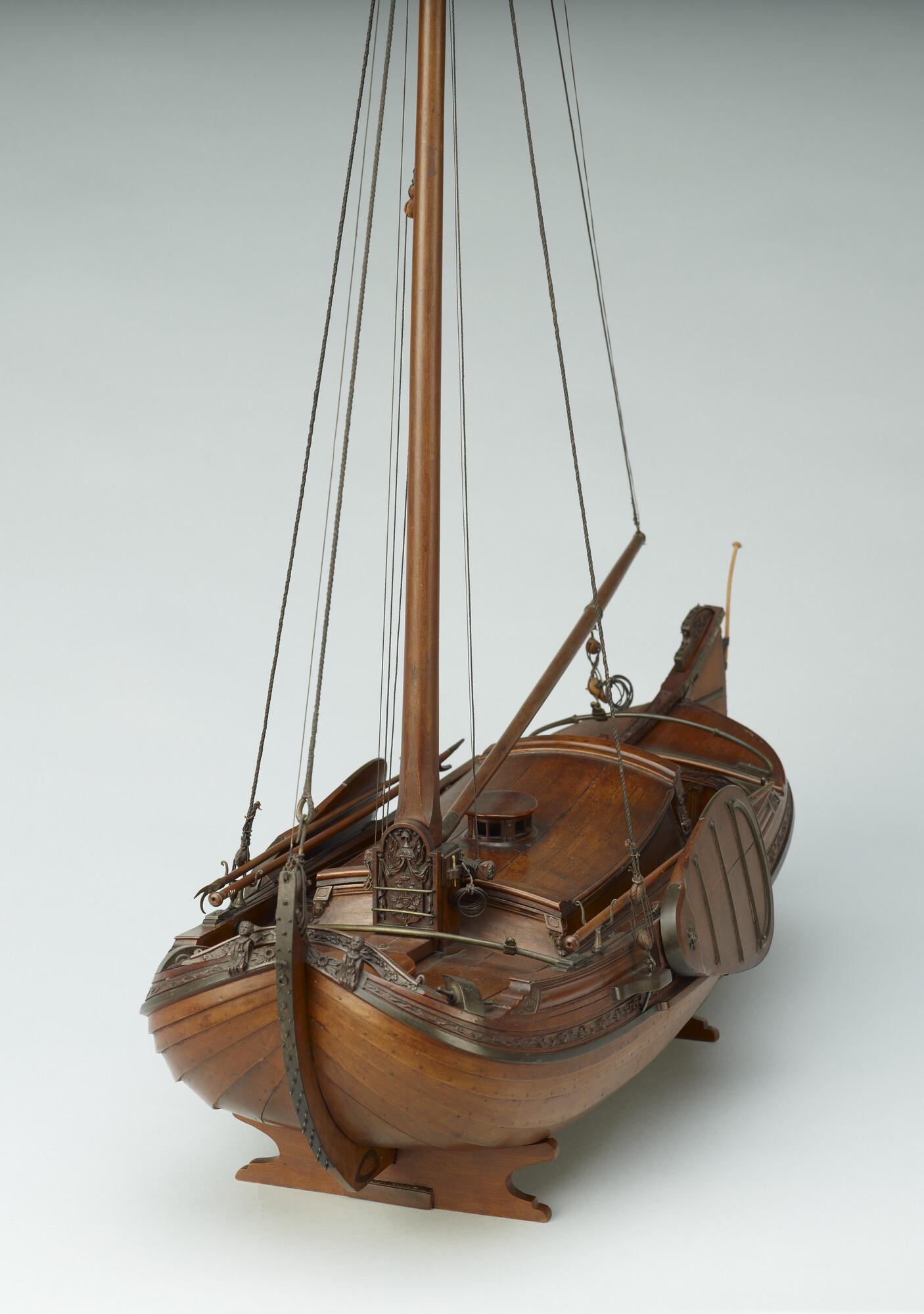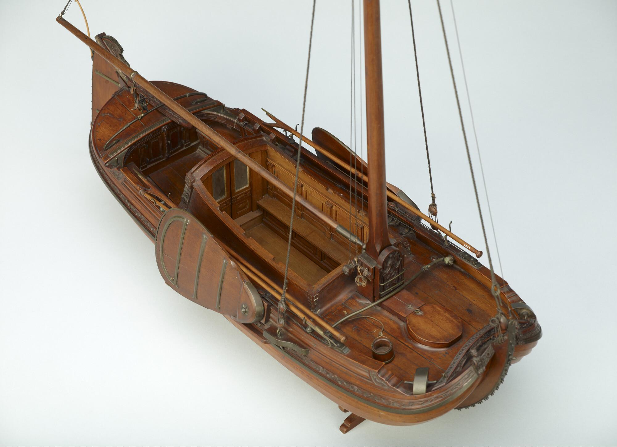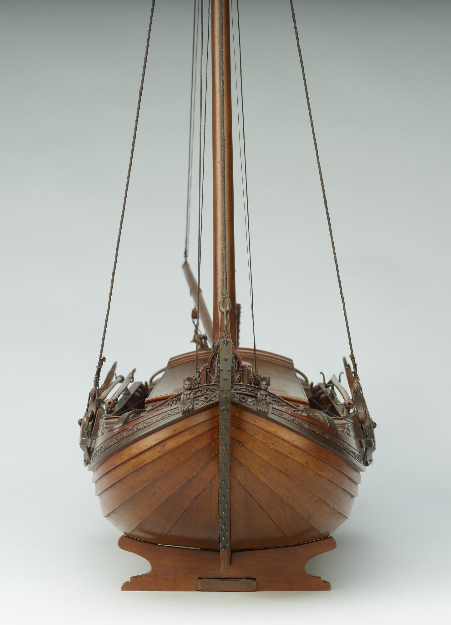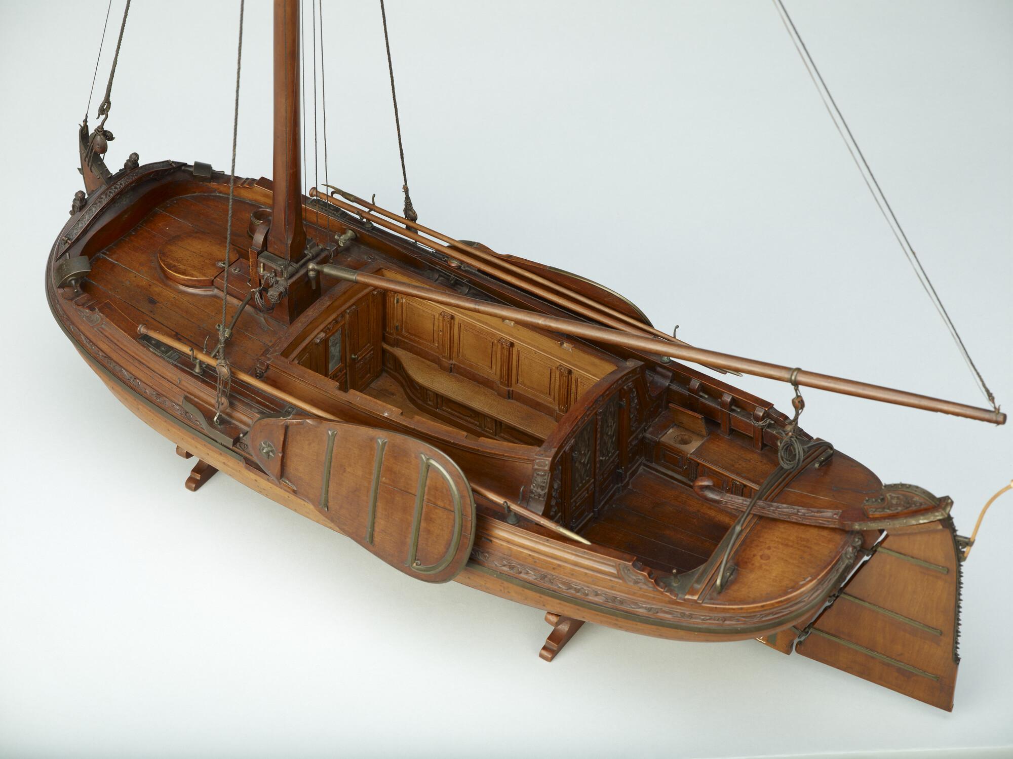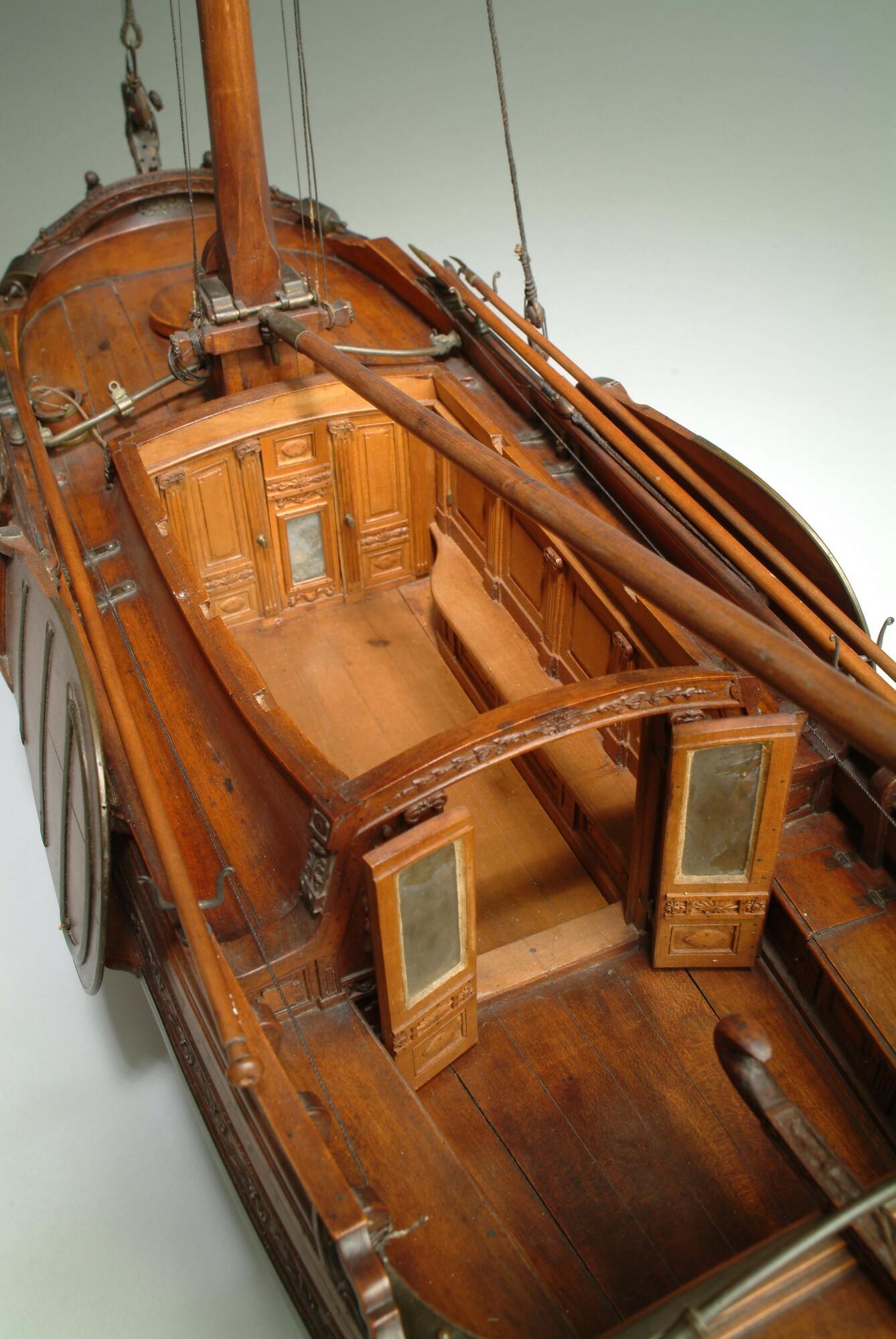 Getuigd model van een overnaadse boeier met een strijkbare mast, gebouwd in 1815 voor de Russische tsaar Alexander I. Het mastschild is versierd met de dubbele Russische adelaar. In een van de kajuitbanken zit een pleeluik.