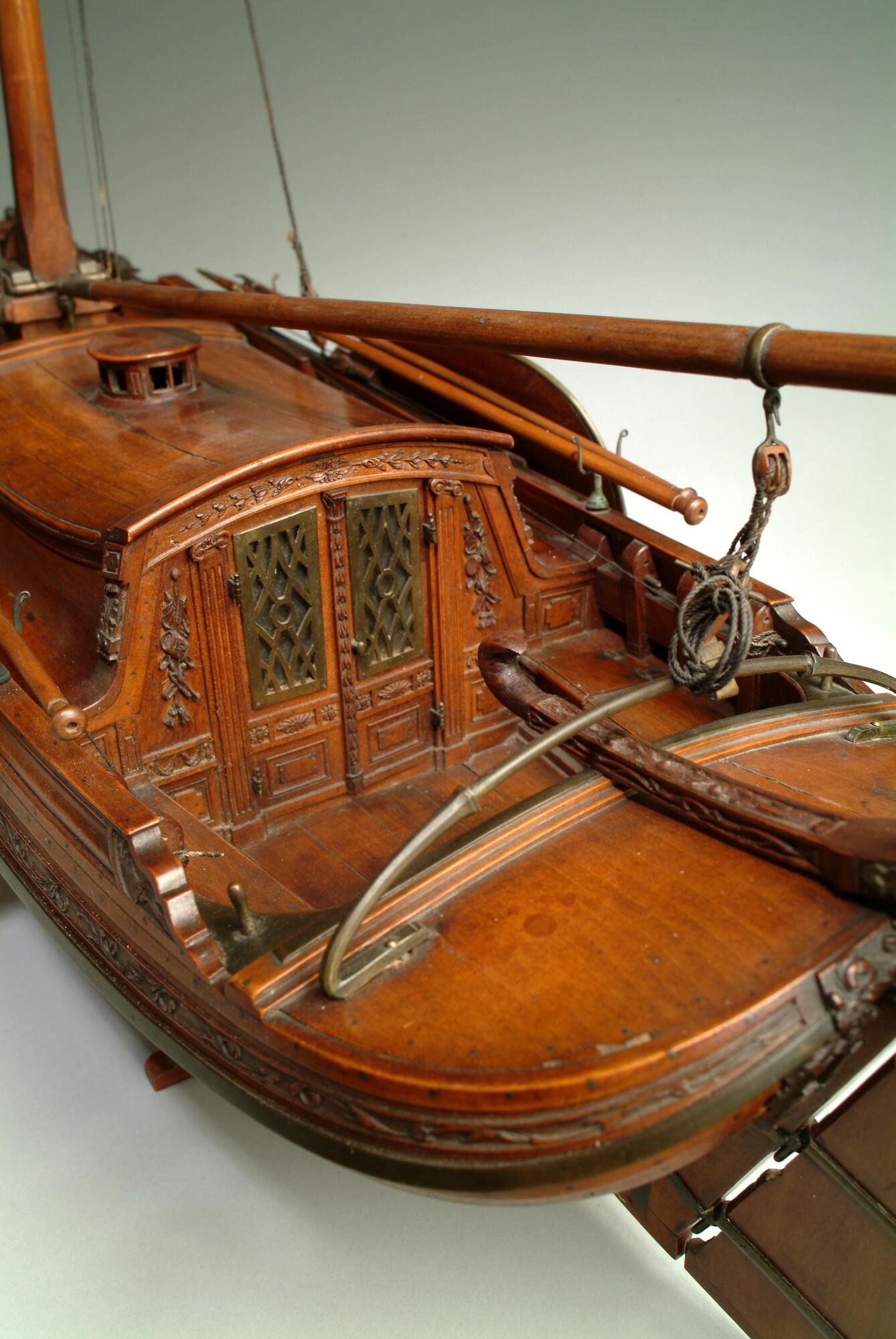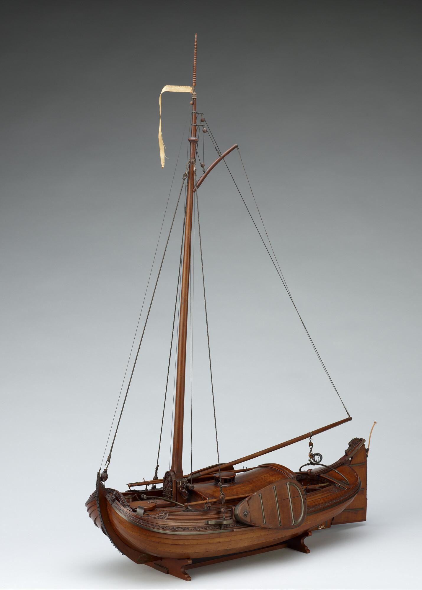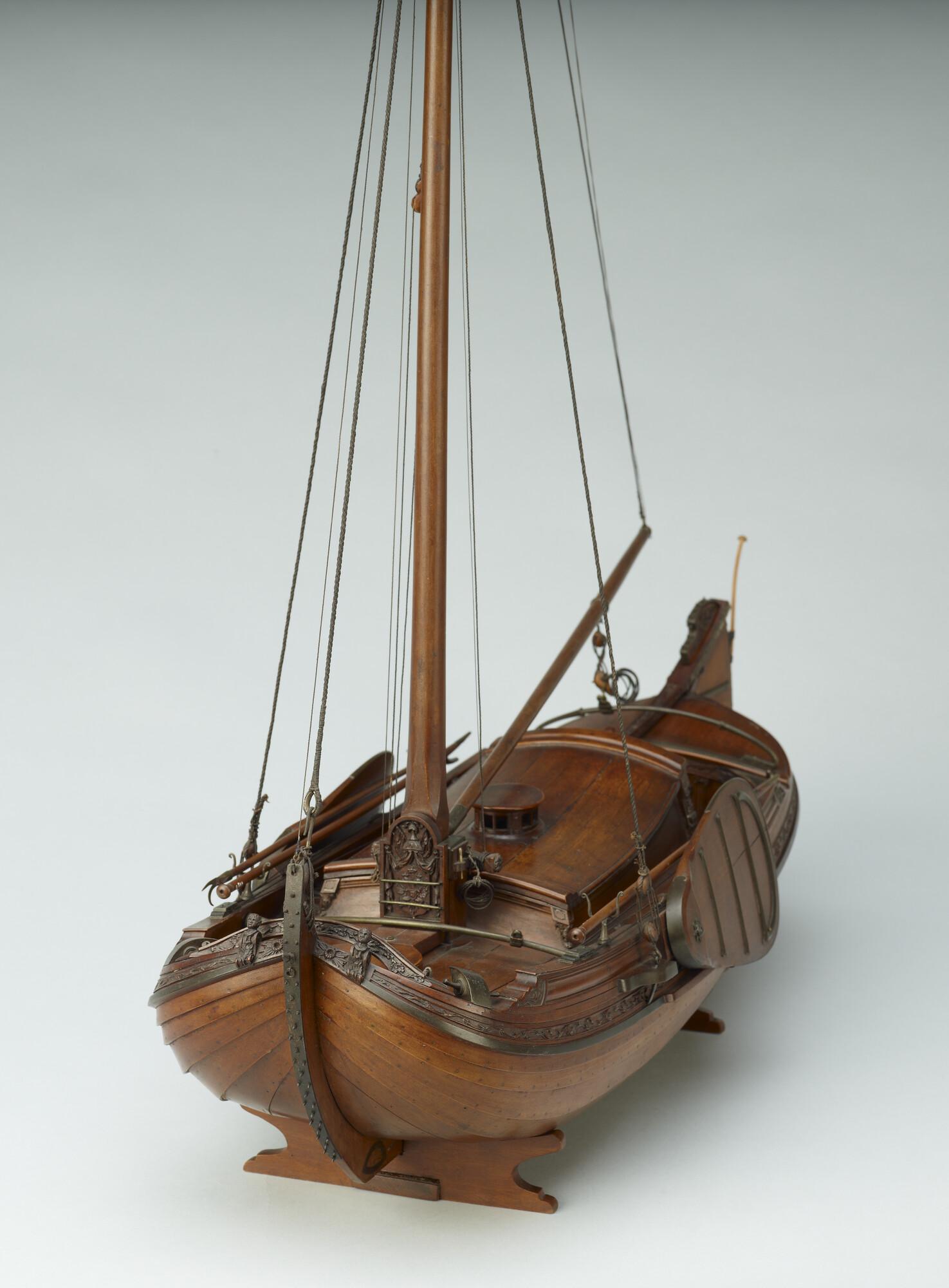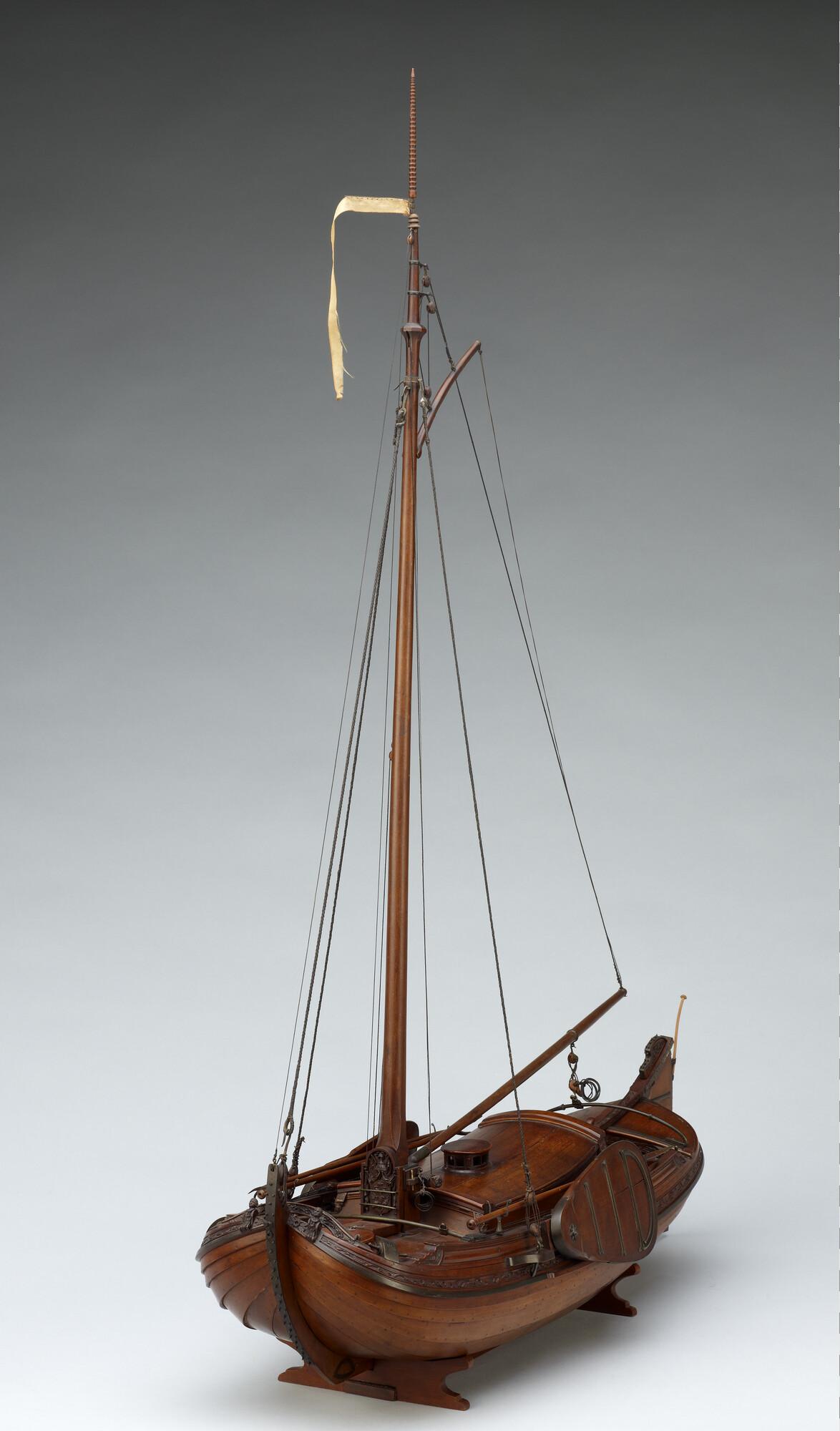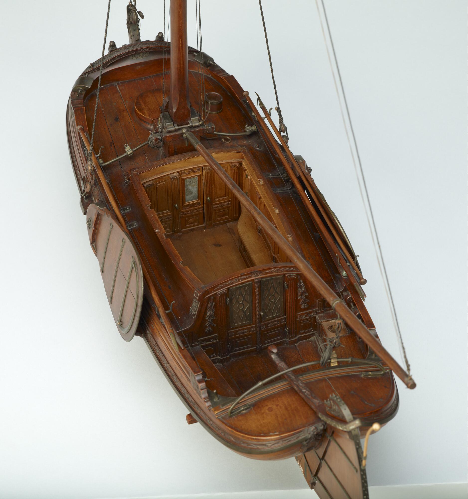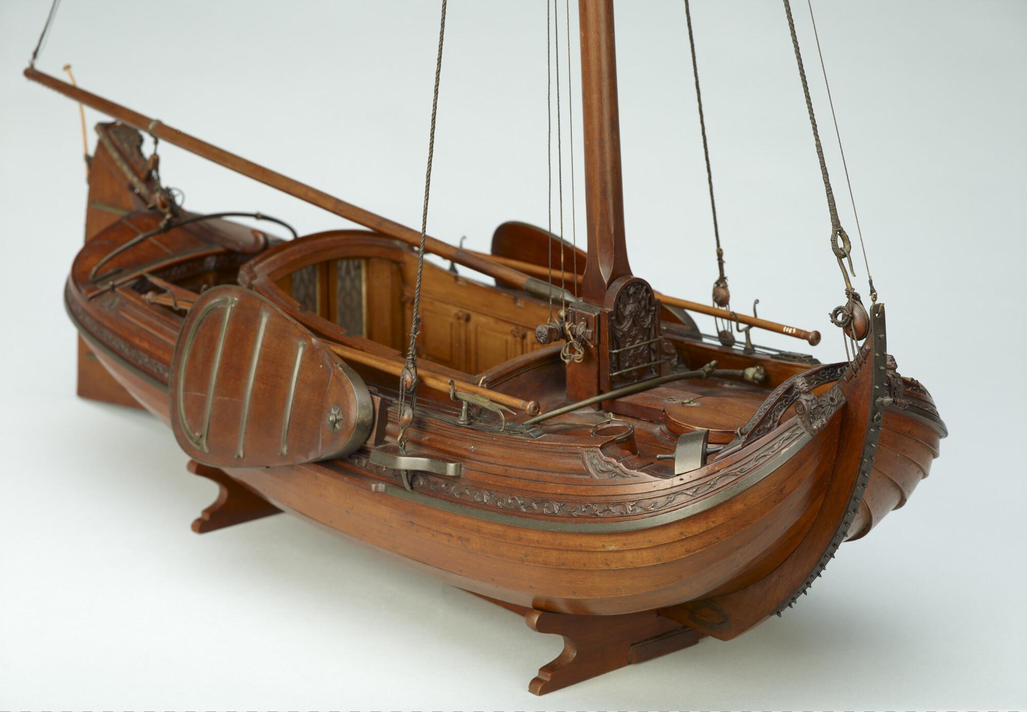 Getuigd model van een overnaadse boeier met een strijkbare mast, gebouwd in 1815 voor de Russische tsaar Alexander I. Het mastschild is versierd met de dubbele Russische adelaar. In een van de kajuitbanken zit een pleeluik.