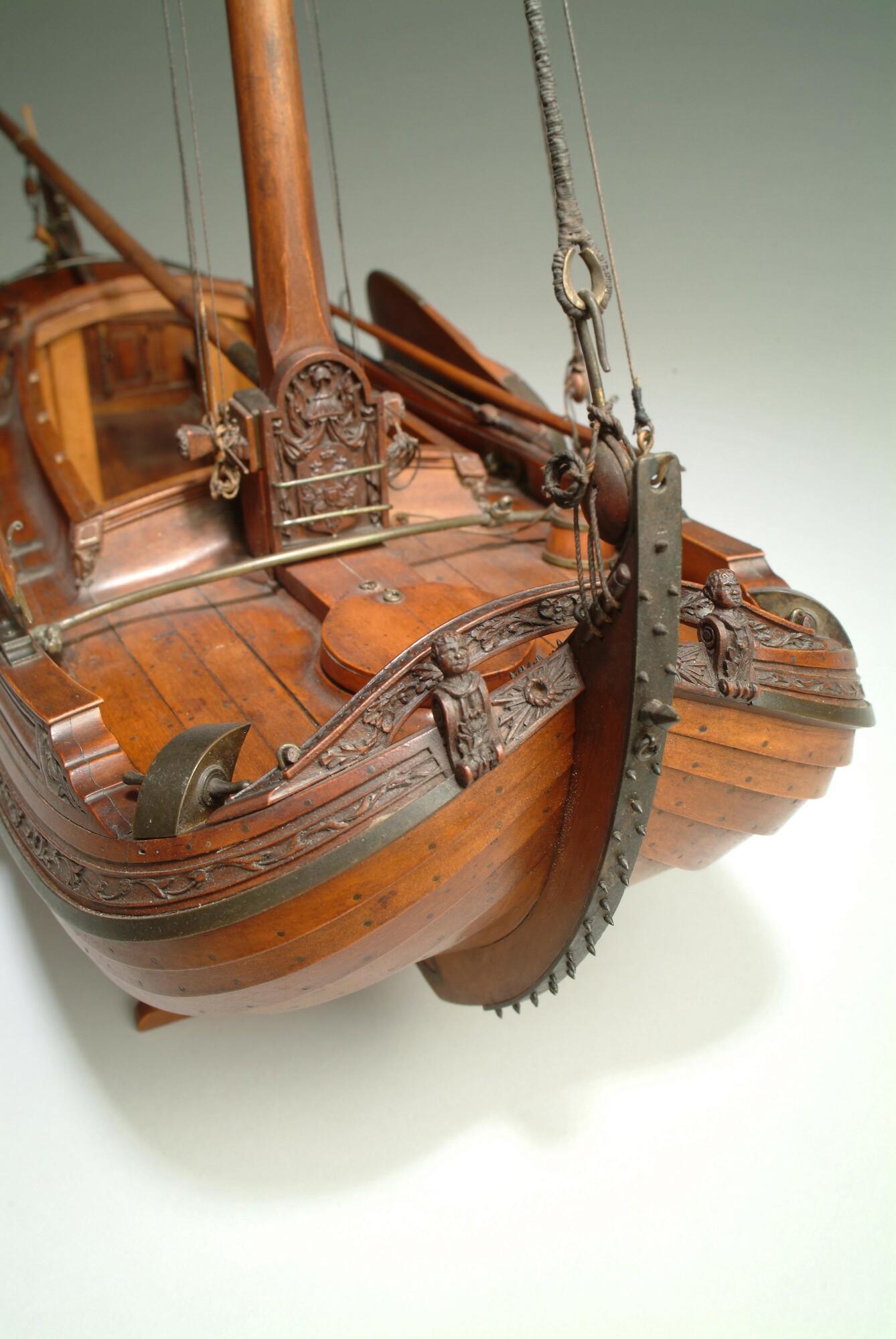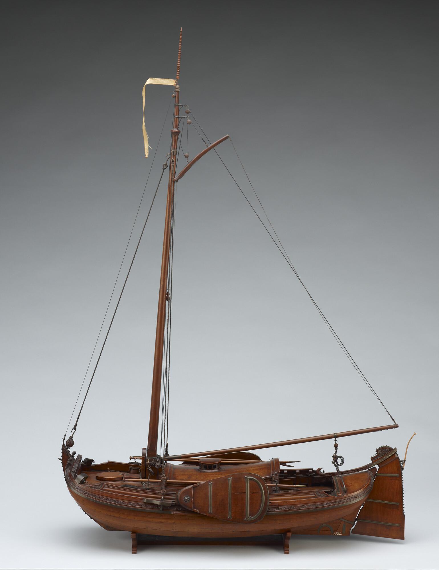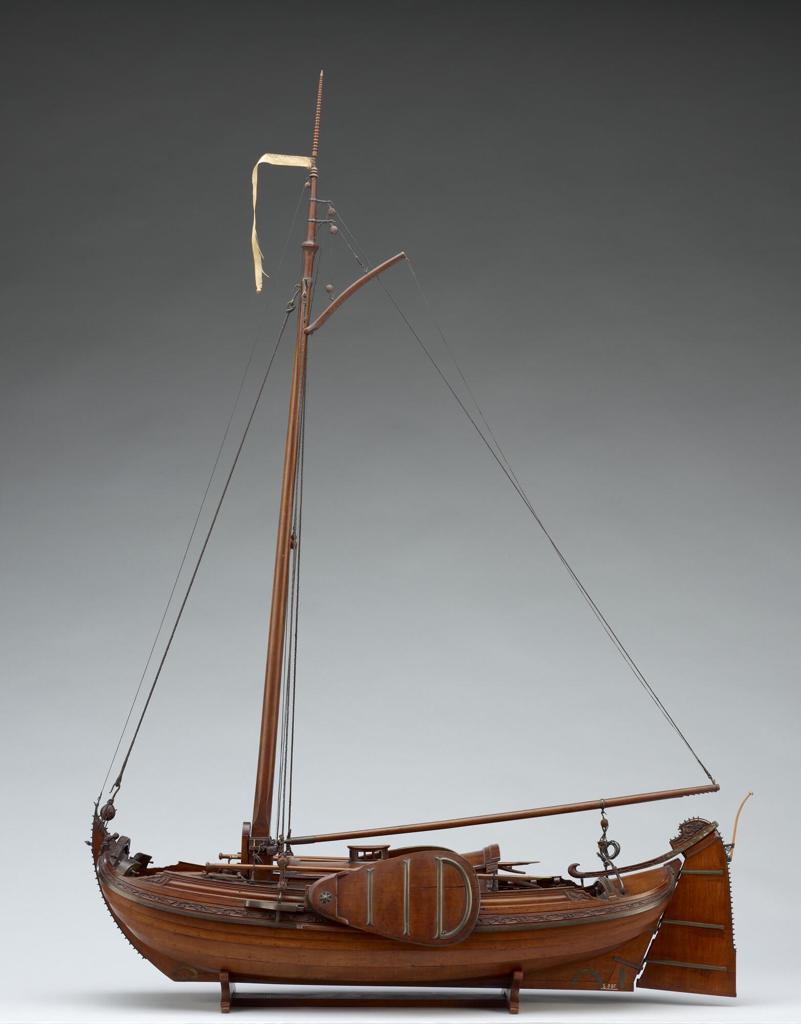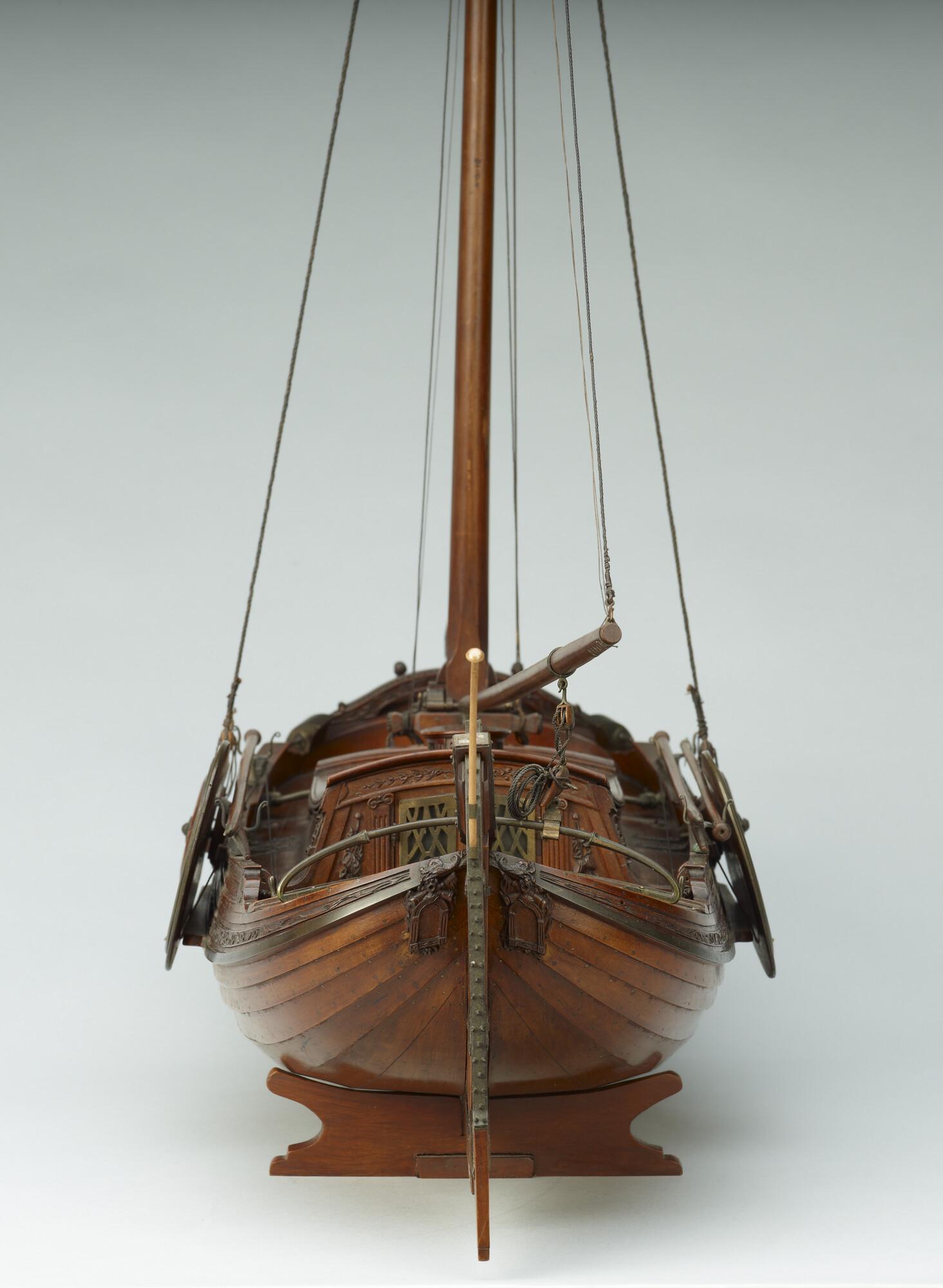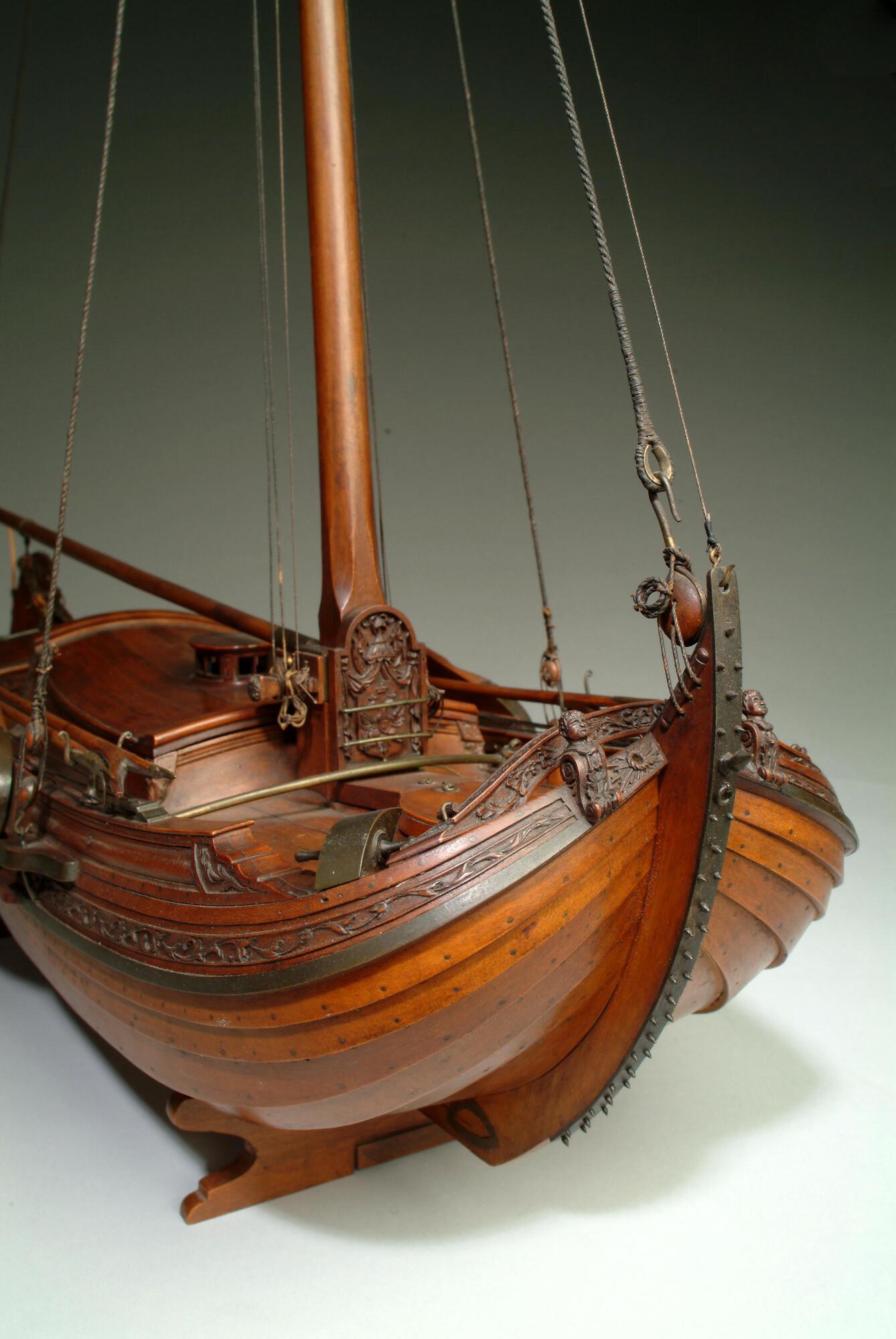 Getuigd model van een overnaadse boeier met een strijkbare mast, gebouwd in 1815 voor de Russische tsaar Alexander I. Het mastschild is versierd met de dubbele Russische adelaar. In een van de kajuitbanken zit een pleeluik.