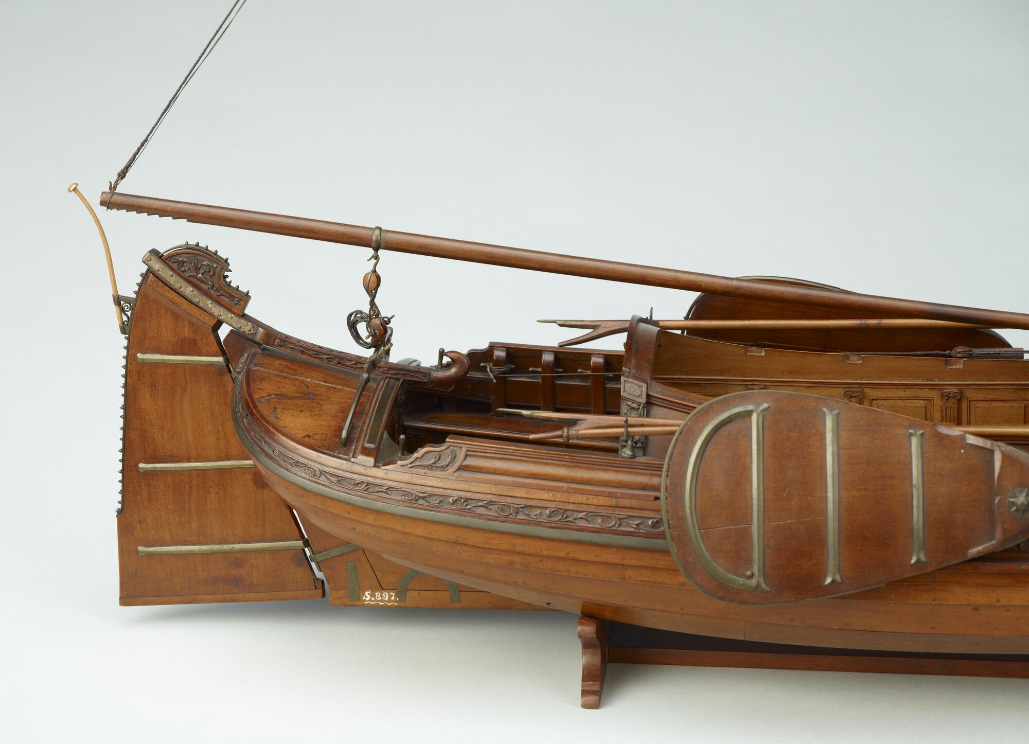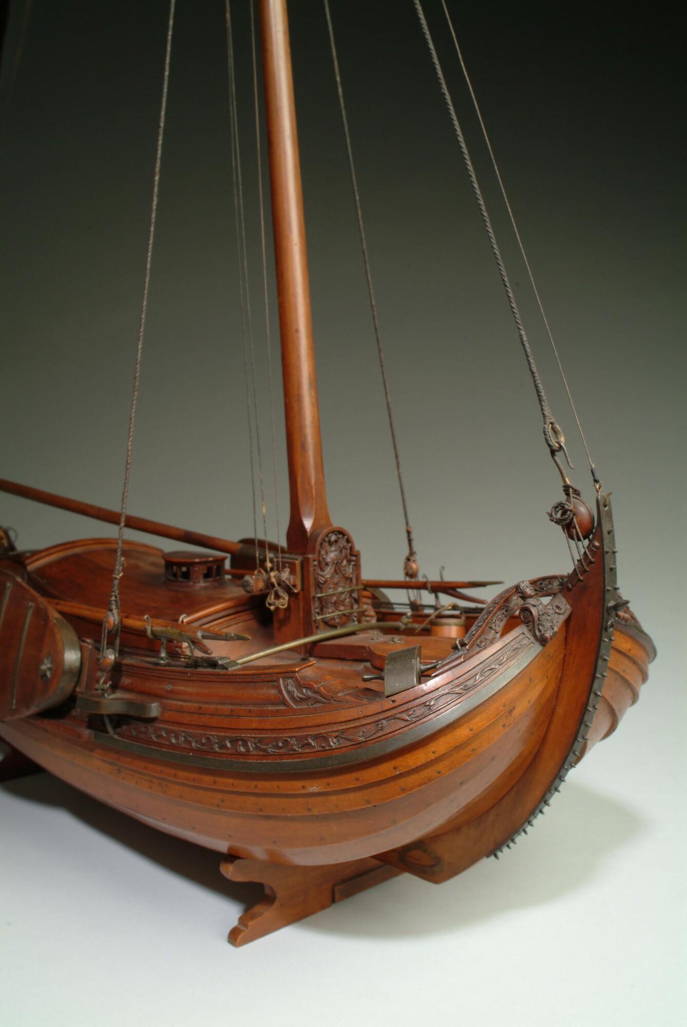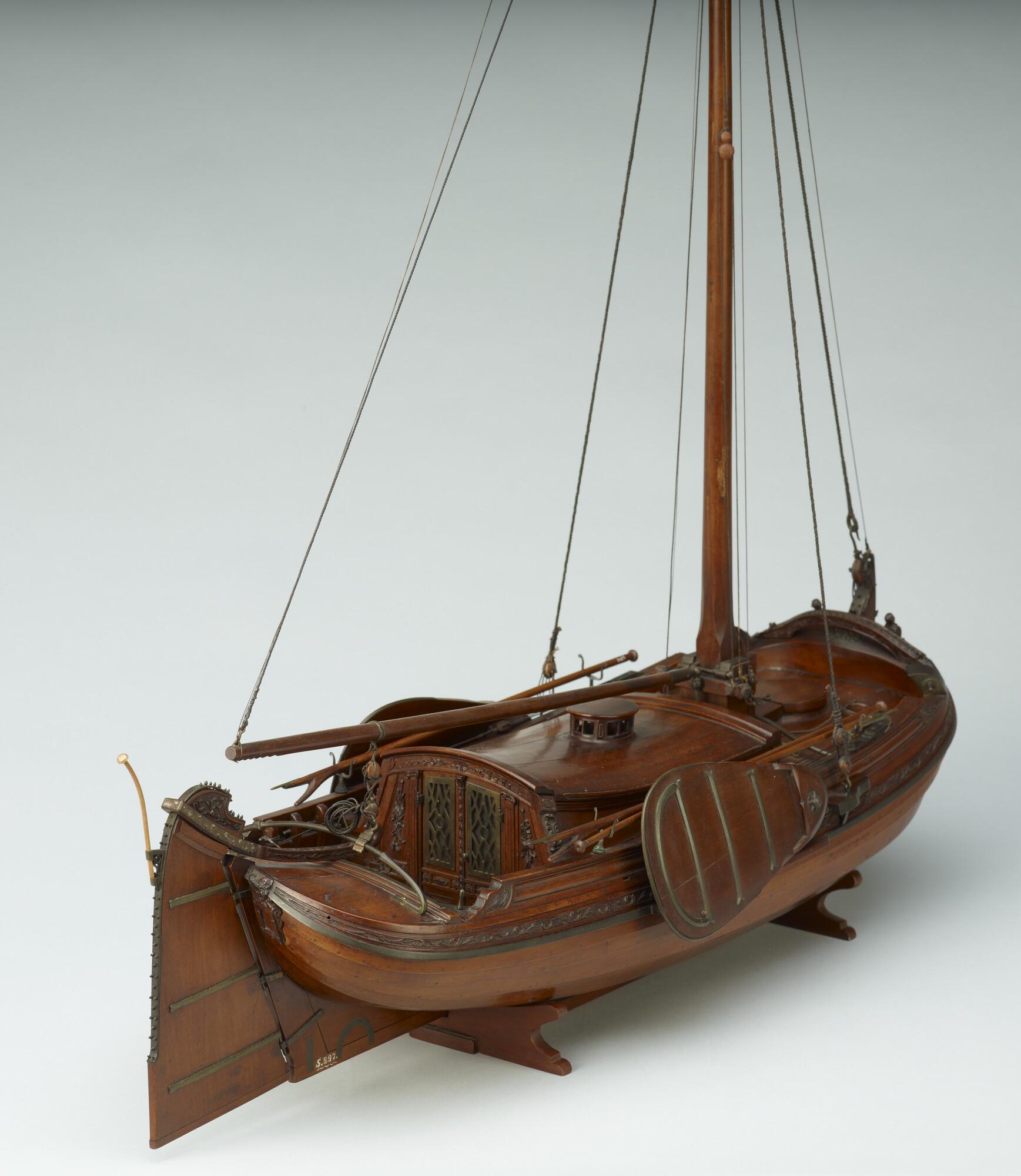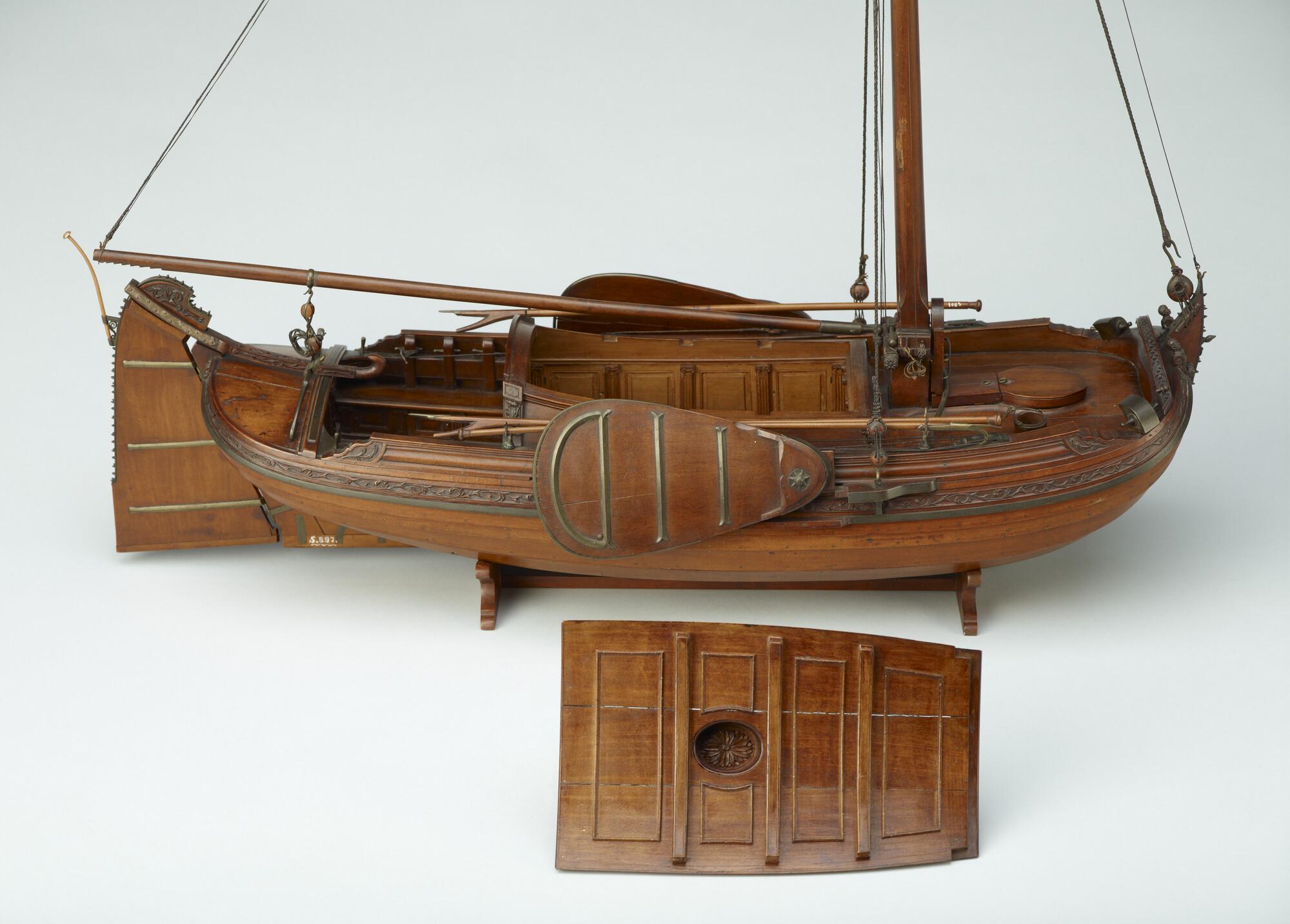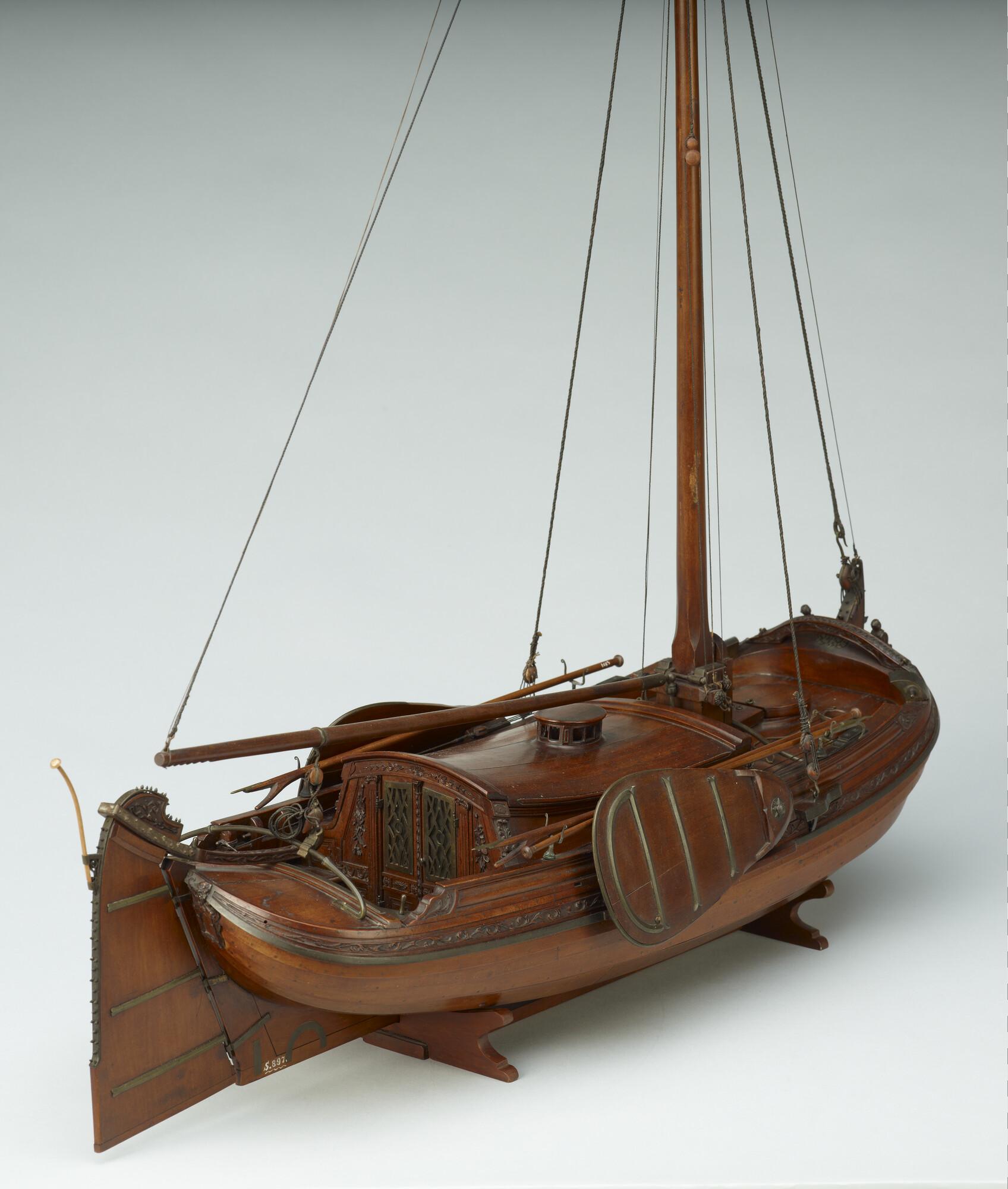 Getuigd model van een overnaadse boeier met een strijkbare mast, gebouwd in 1815 voor de Russische tsaar Alexander I. Het mastschild is versierd met de dubbele Russische adelaar. In een van de kajuitbanken zit een pleeluik.