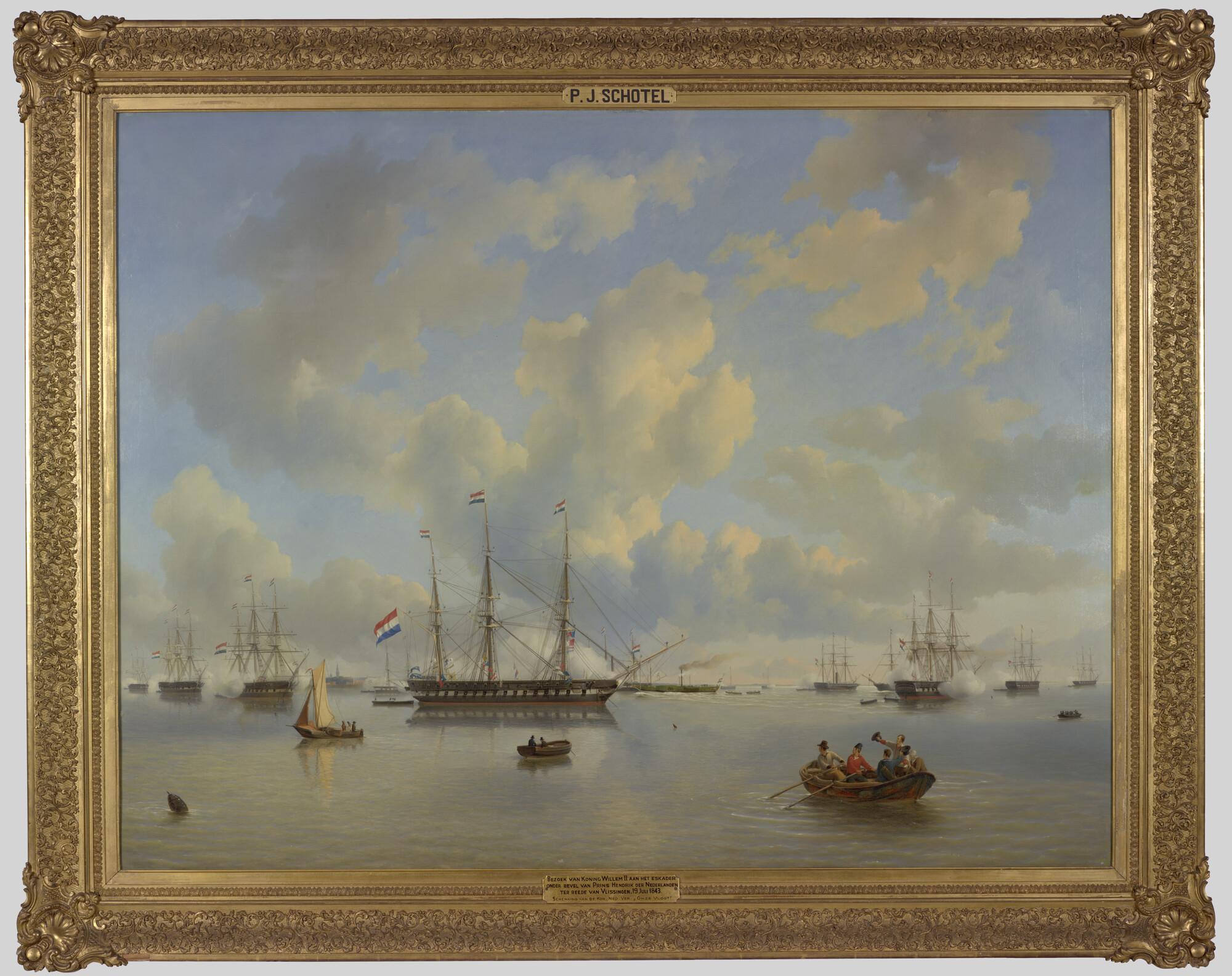 Bezoek van koning Willem II aan het eskader onder bevel van prins Hendrik der Nederlanden liggende ter rede van Vlissingen, 19 juli 1843.