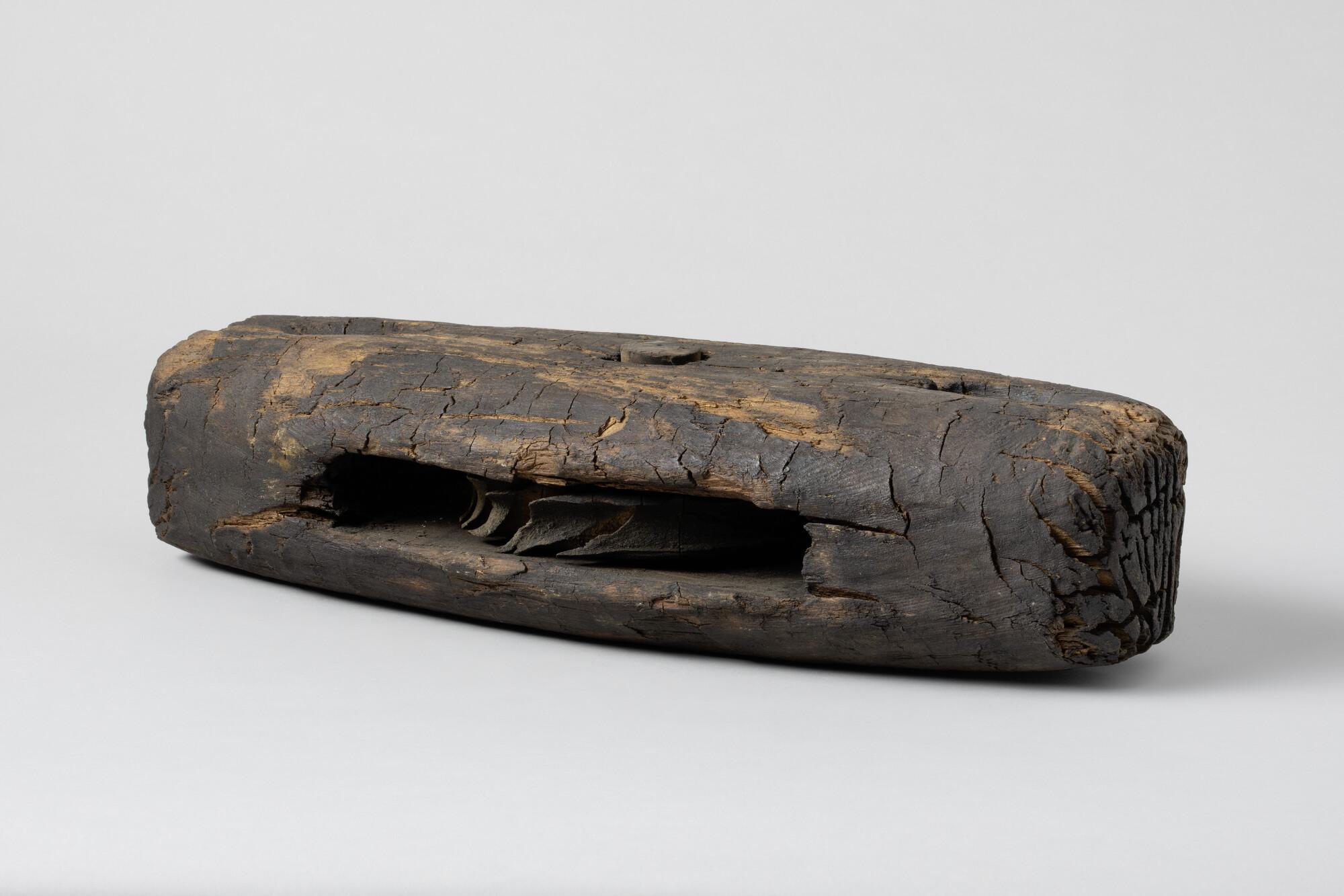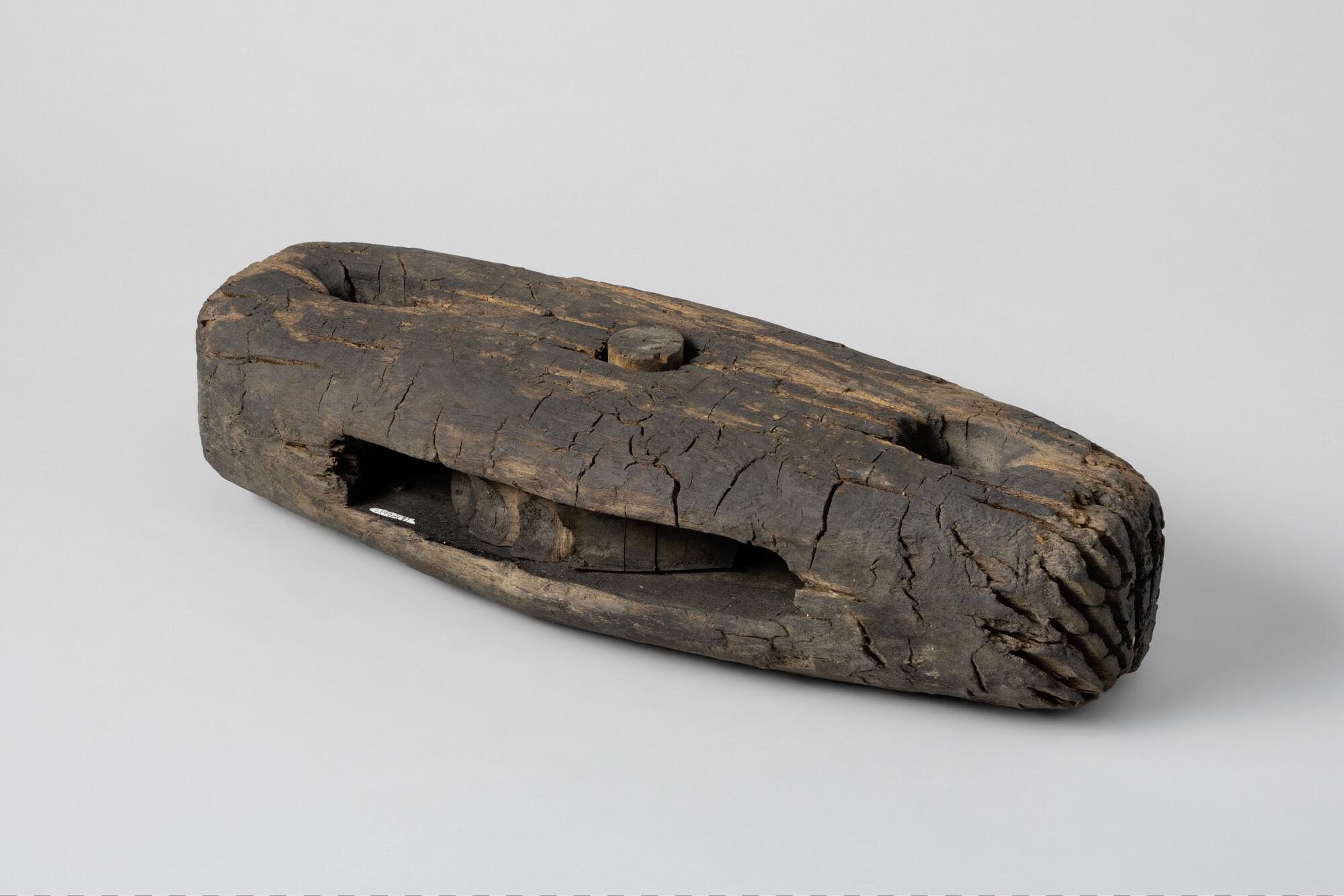 Staartblok, enkelschijfs. Afkomstig uit het wrak van de "Brederode", in 1658 gezonken tijdens de Slag in de Sont.