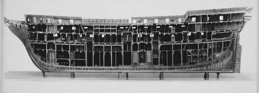 Rompmodel (schaal 1:25) van het linieschip Zr.Ms. Neptunus, later hernoemd tot Zr.Ms. Koning der Nederlanden, van 84 stukken dat in twee helften uiteen kan worden genomen. Het model toont aan stuurboordzijde alle details met spillen, kaapstanders en de inrichting van de vertrekken, bakboordzijde toont alleen de dekken en de dragende constructie daarvan.