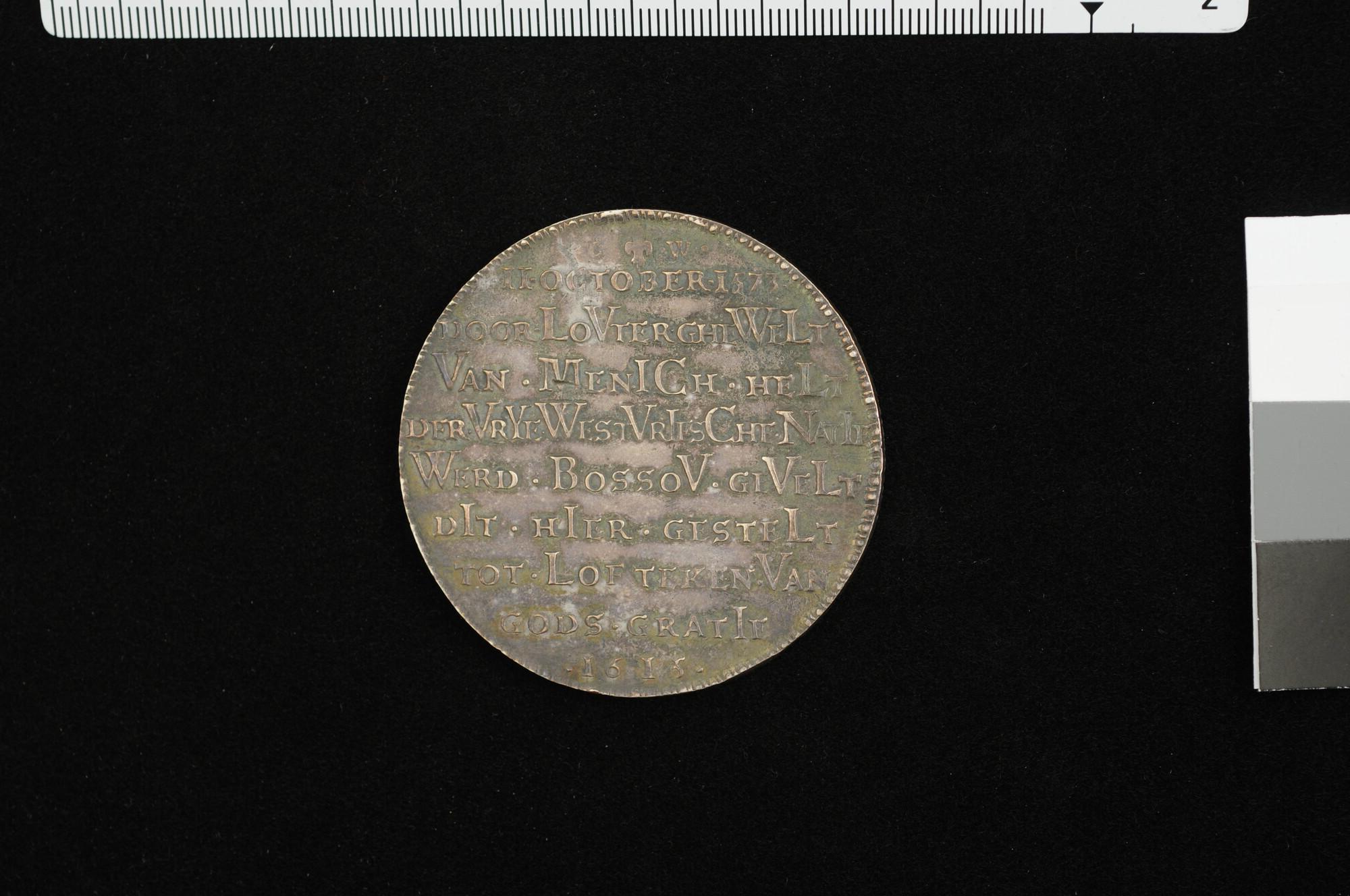 Penning op de herdenking van de nederlaag van Bossu op de Zuiderzee (1573), 1615.