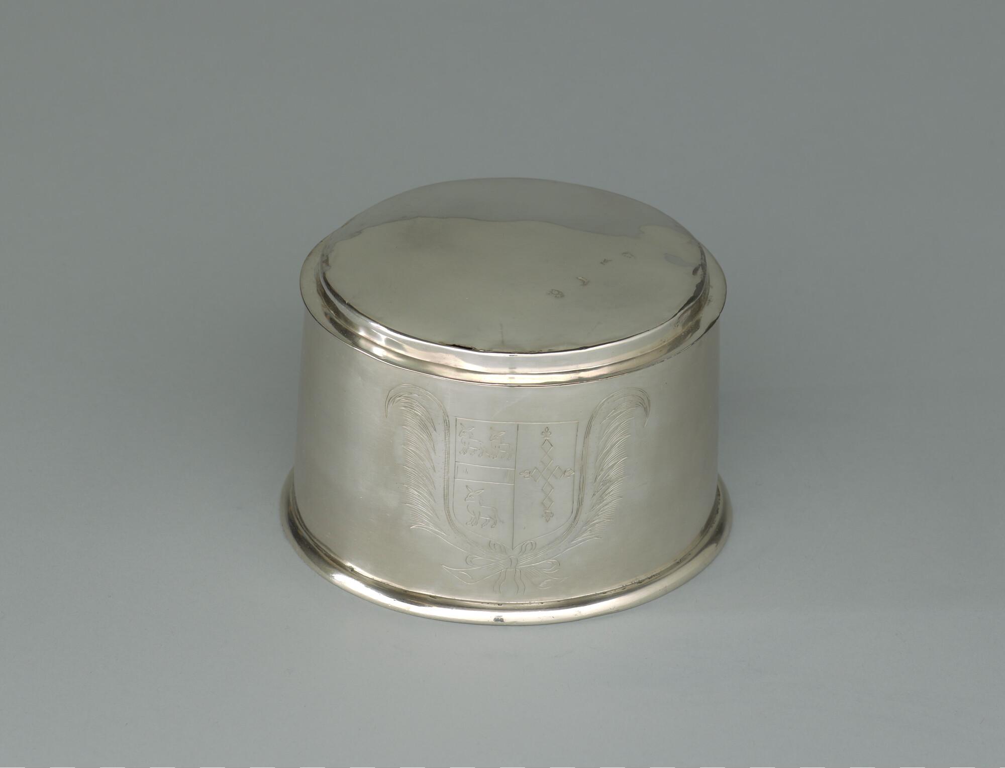 Zilveren trommel met het familiewapen van de Engelse admiraal George Ayscue.