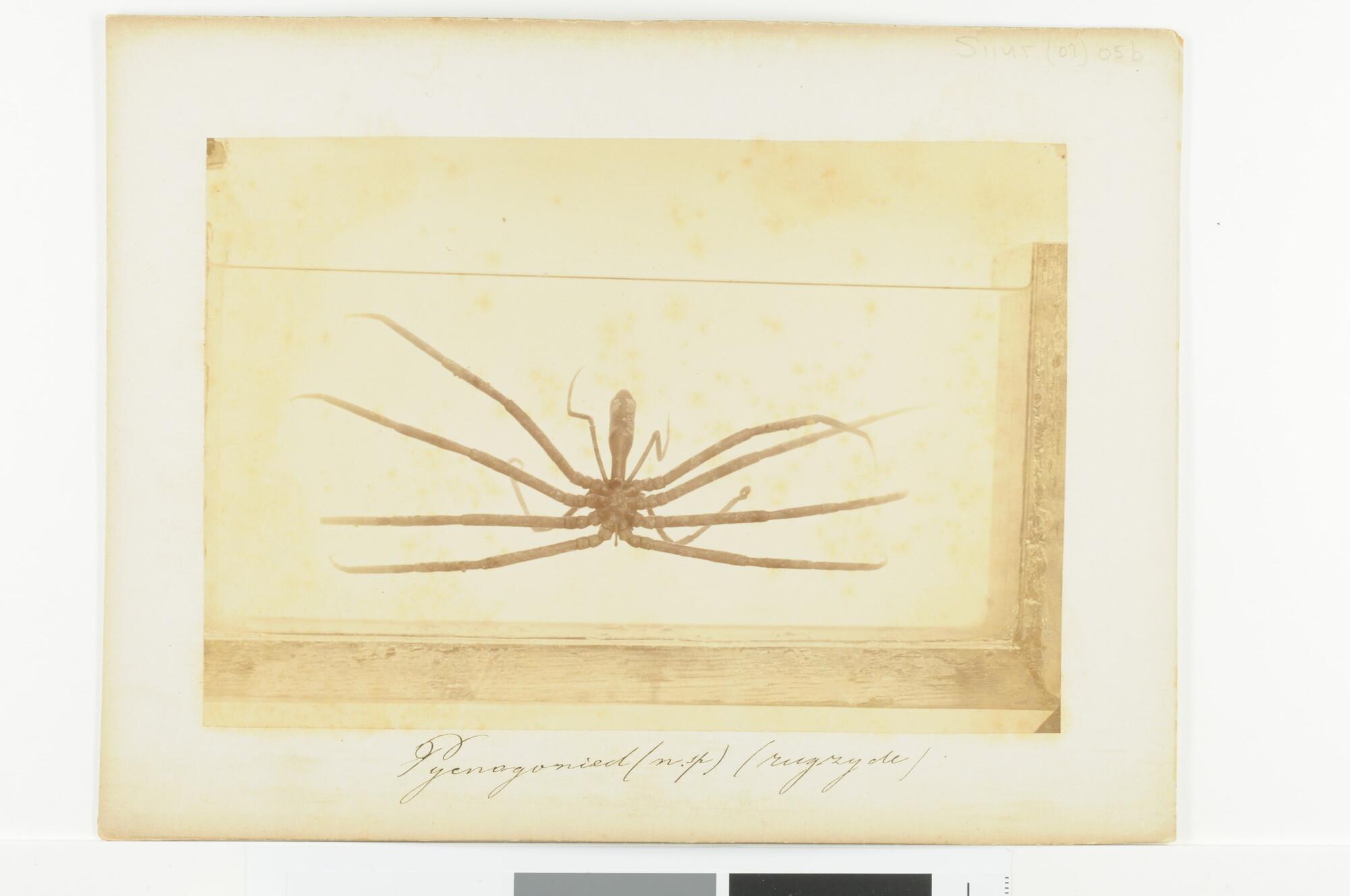 Buik- en rugzijde van een Pycnoganied (Pycnogoniden), vermoedelijk gevangen in de Barents-Zee, tijdens de reis van de "Willem Barents" in 1878