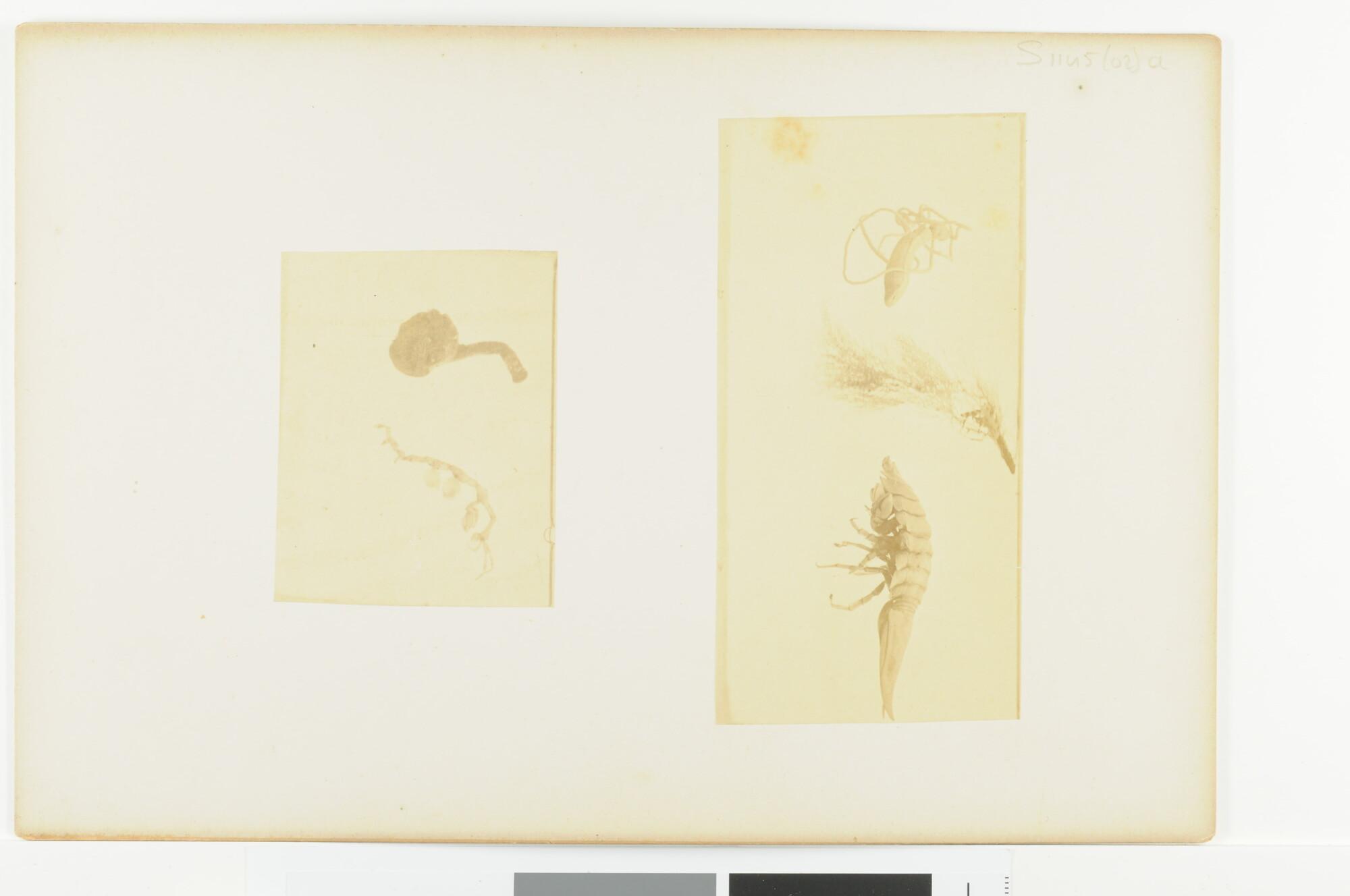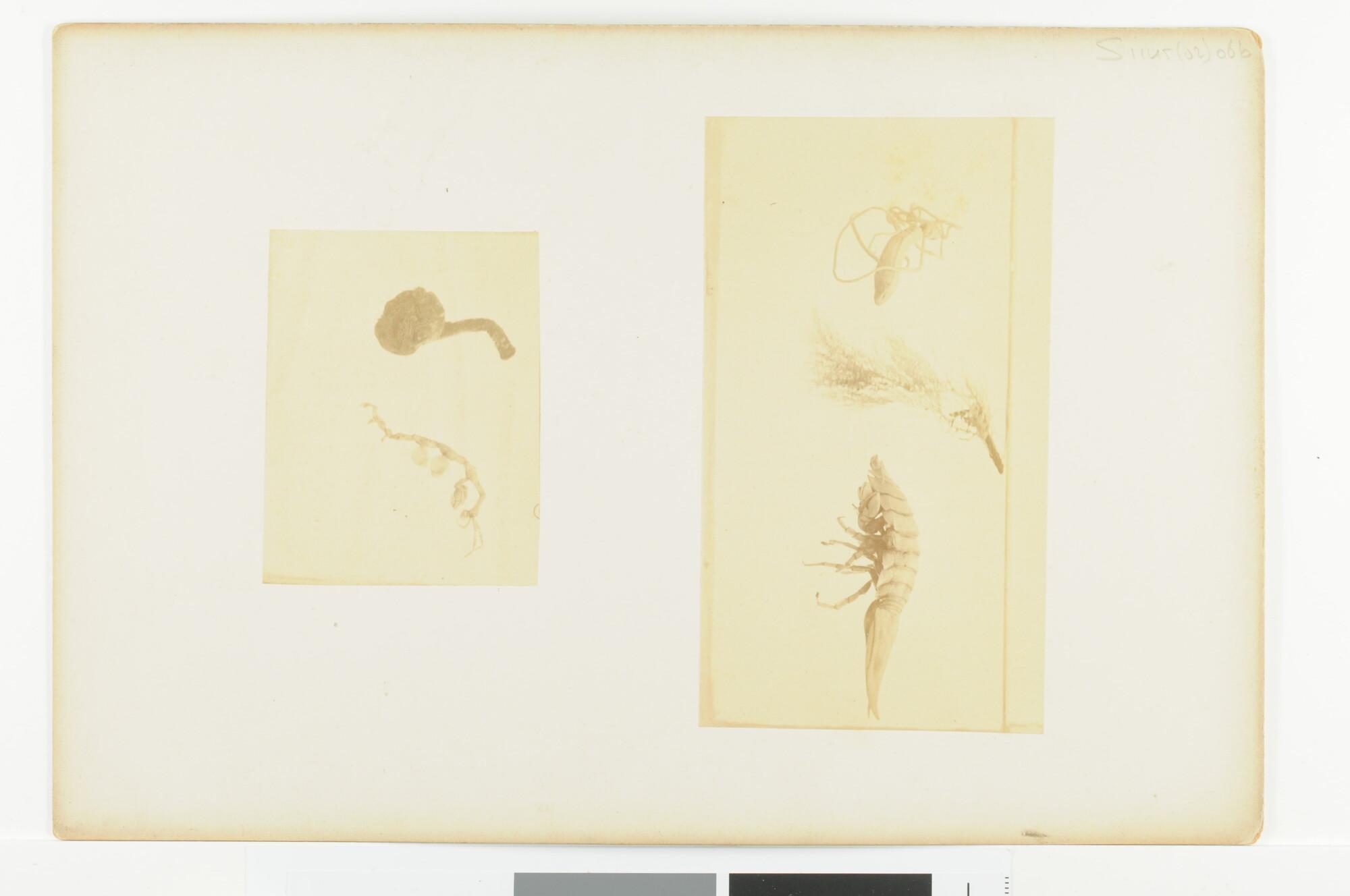 Zijaanzicht van een een Gephyree behorend tot de Wormen, en een Isopode (pissebedachtige), een Lucernaria en Caprella o.a. gevangen op 31 juli in de Barents-Zee, tijdens de reis van de Willem Barents in 1878.