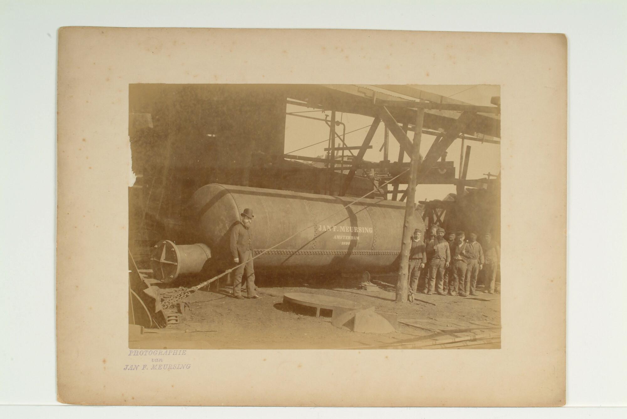 Een distilleerketel (nummer 25) in aanbouw op de werf 'De Nachtegaal', 1890
