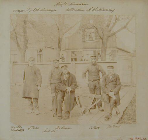 Groepsportret van medewerkers van de werf te Nieuwendam genomen op 22 oktober 1890.