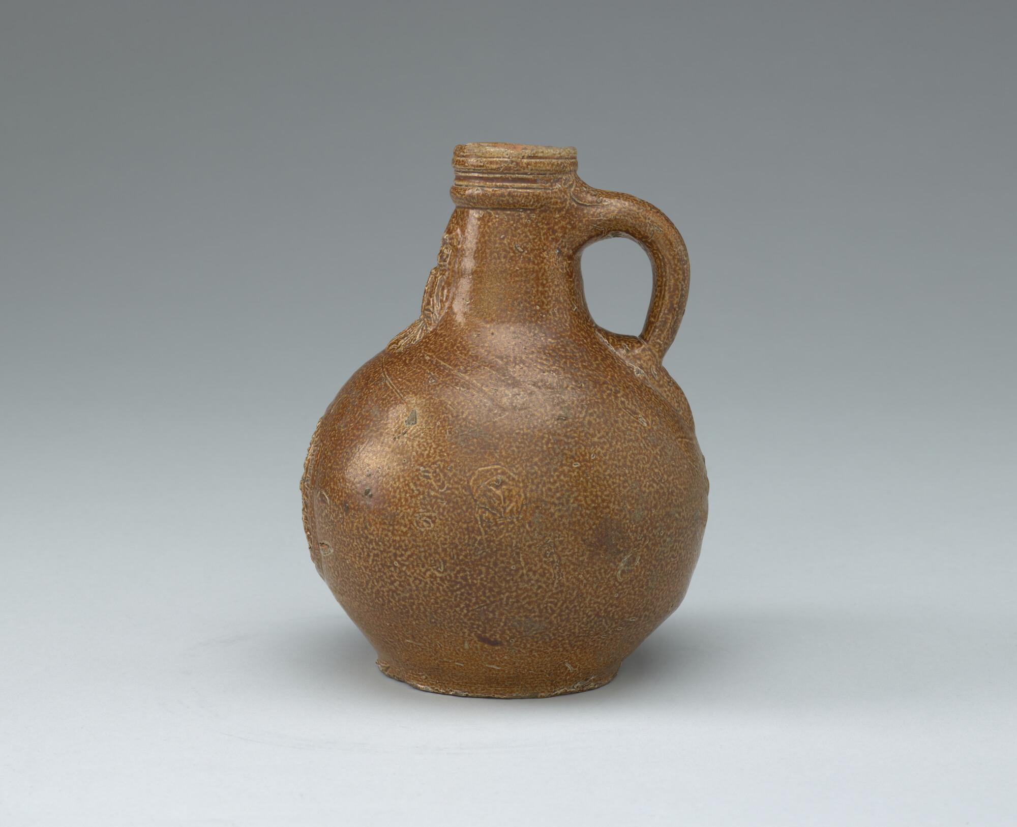 Kruik, zgn. 'baardmankruik' met fantasiewapen