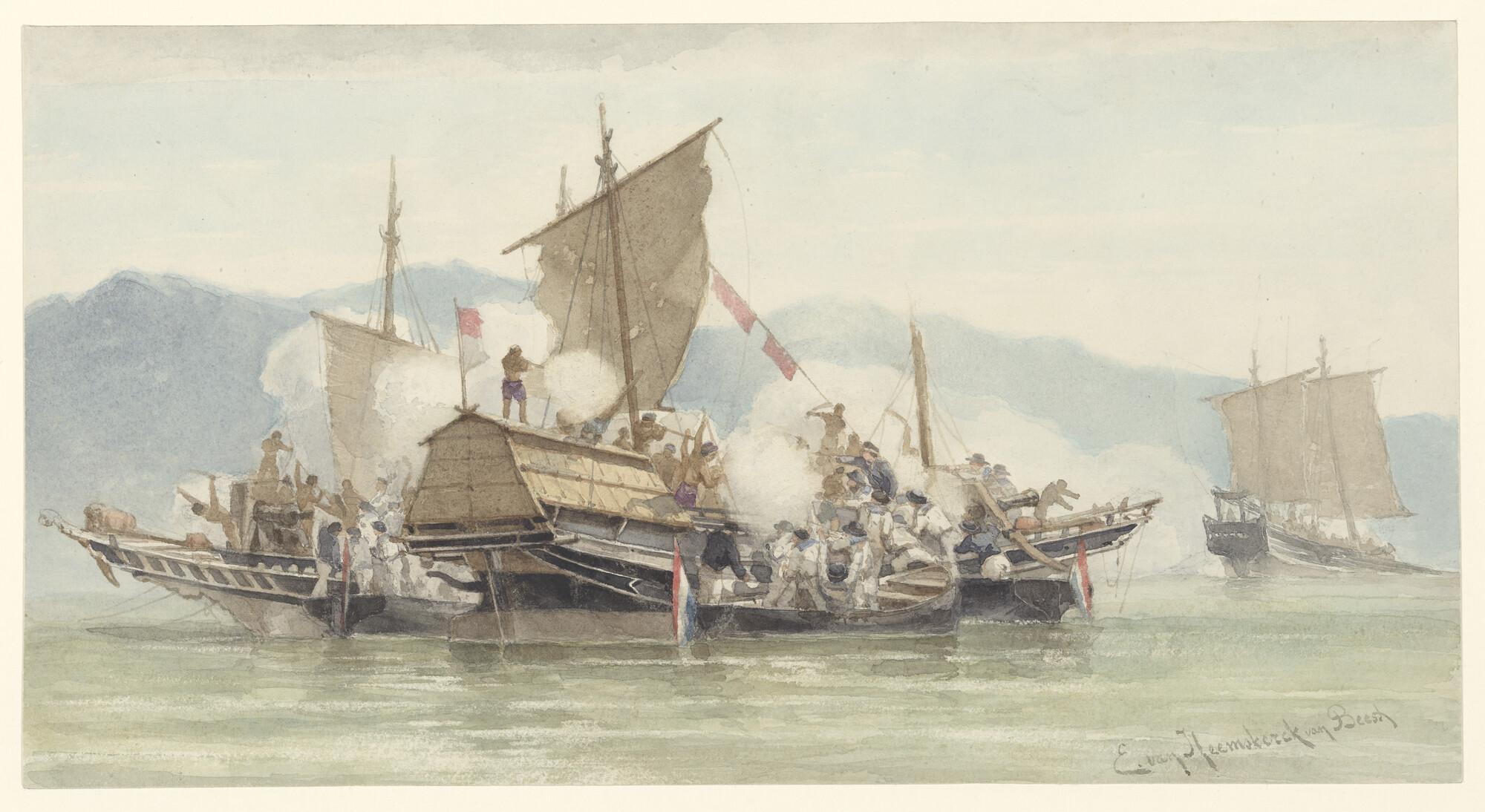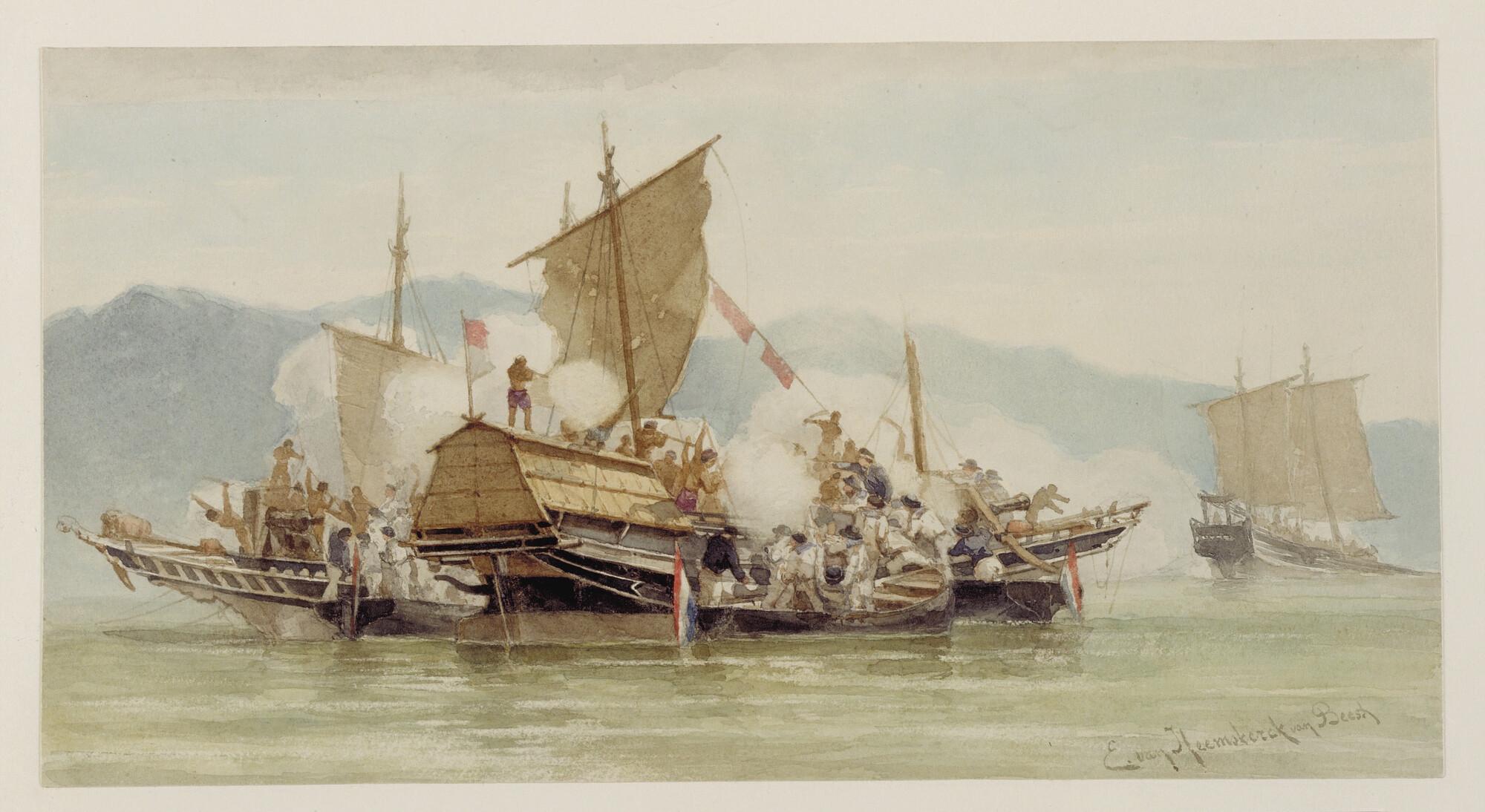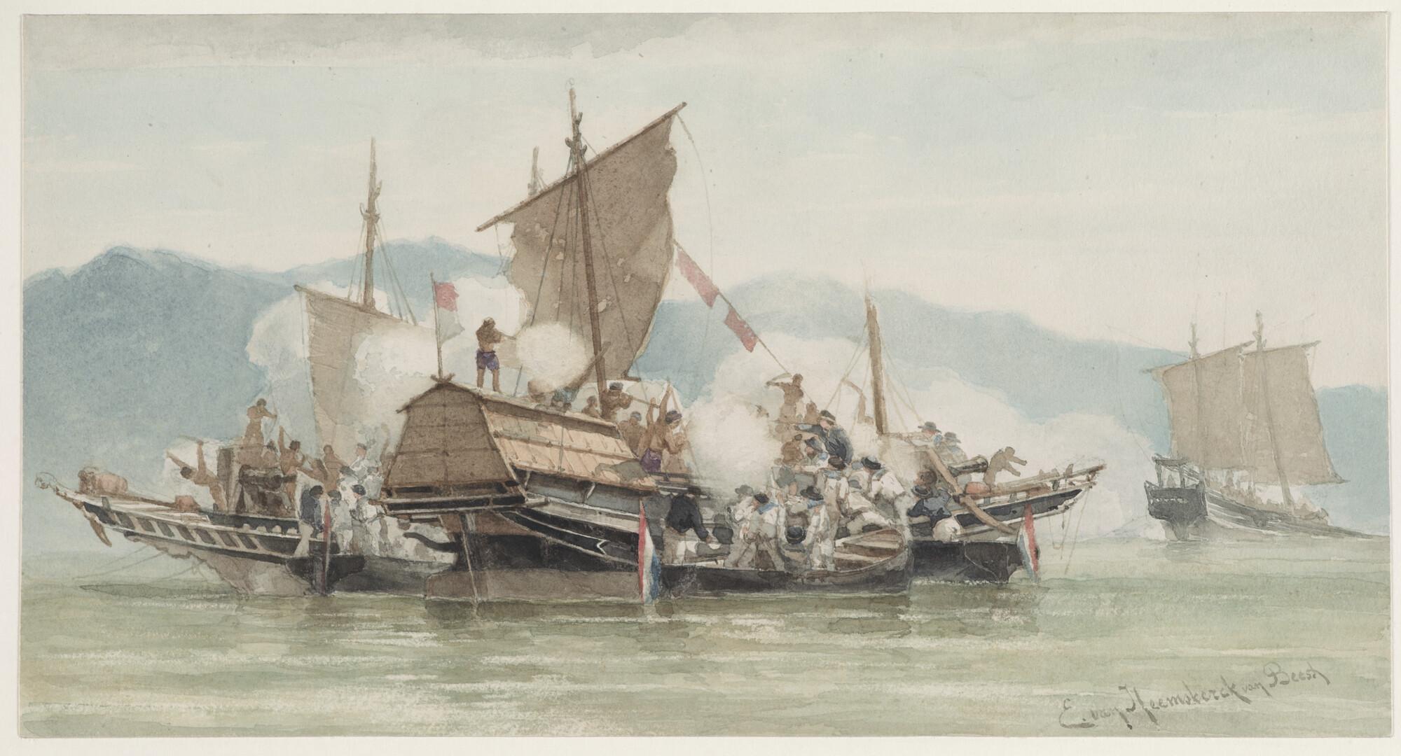 Gevecht met Boeginesche prauwen bij Riouw in 1820.