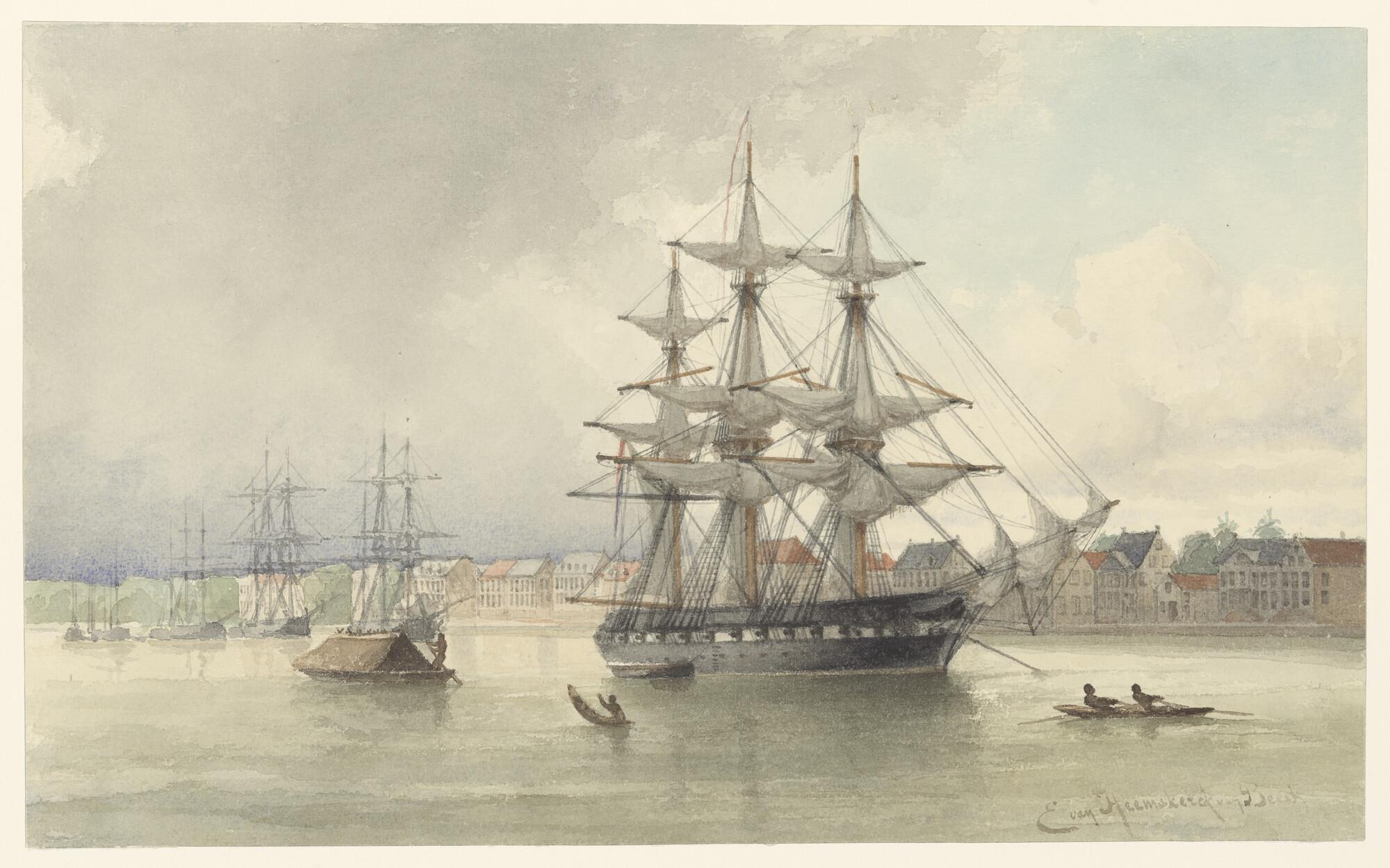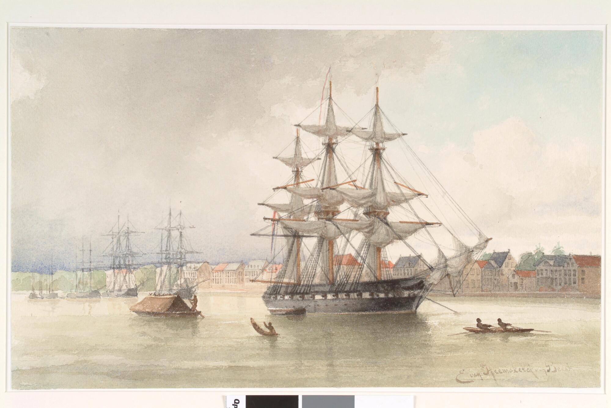 Het korvet Zr.Ms. Amphitrite voor Paramaribo in 1849.