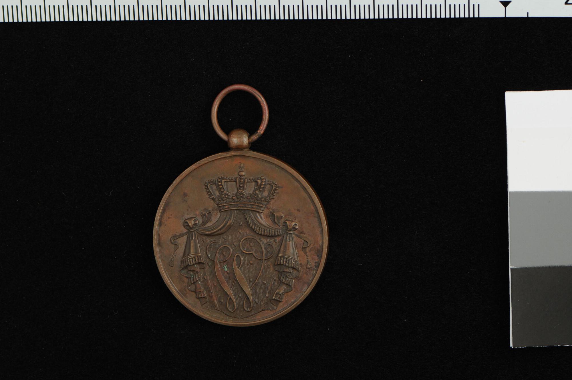 Bronzen medaille voor 12 jaar langdurige, eerlijke en trouwe dienst bij de landmacht. Ingesteld op 5 januari 1845 voor militairen, beneden de rang van officier, dienende in het Nederlandse of Nederlands-Indische leger.