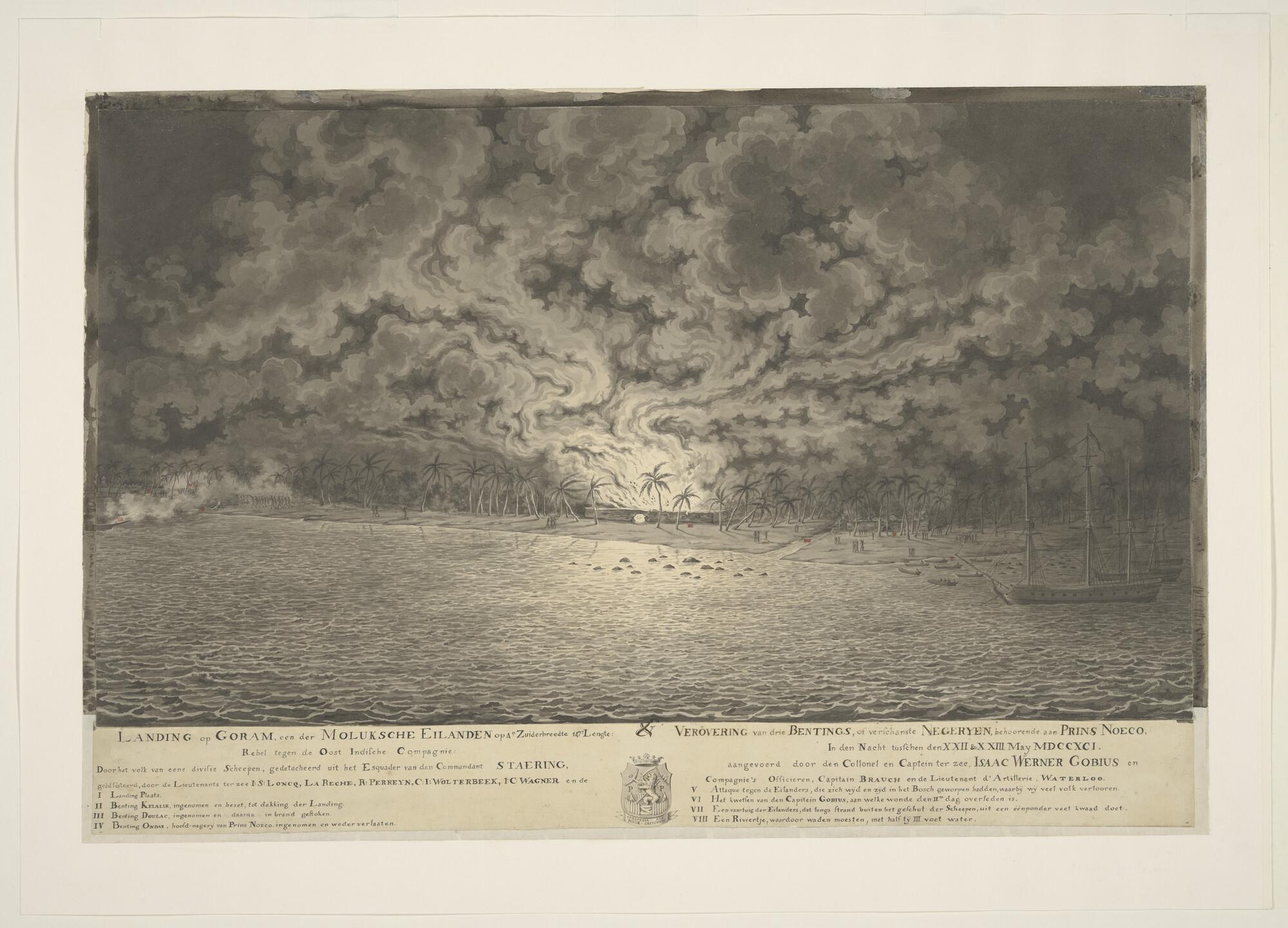 De verovering van drie Bentings (versterkte nederzettingen) op het eiland Goram, een van de Molukse Eilanden, door een eskader onder bevel van kapitein-commandeur A.H.C. Staringh, 1791
