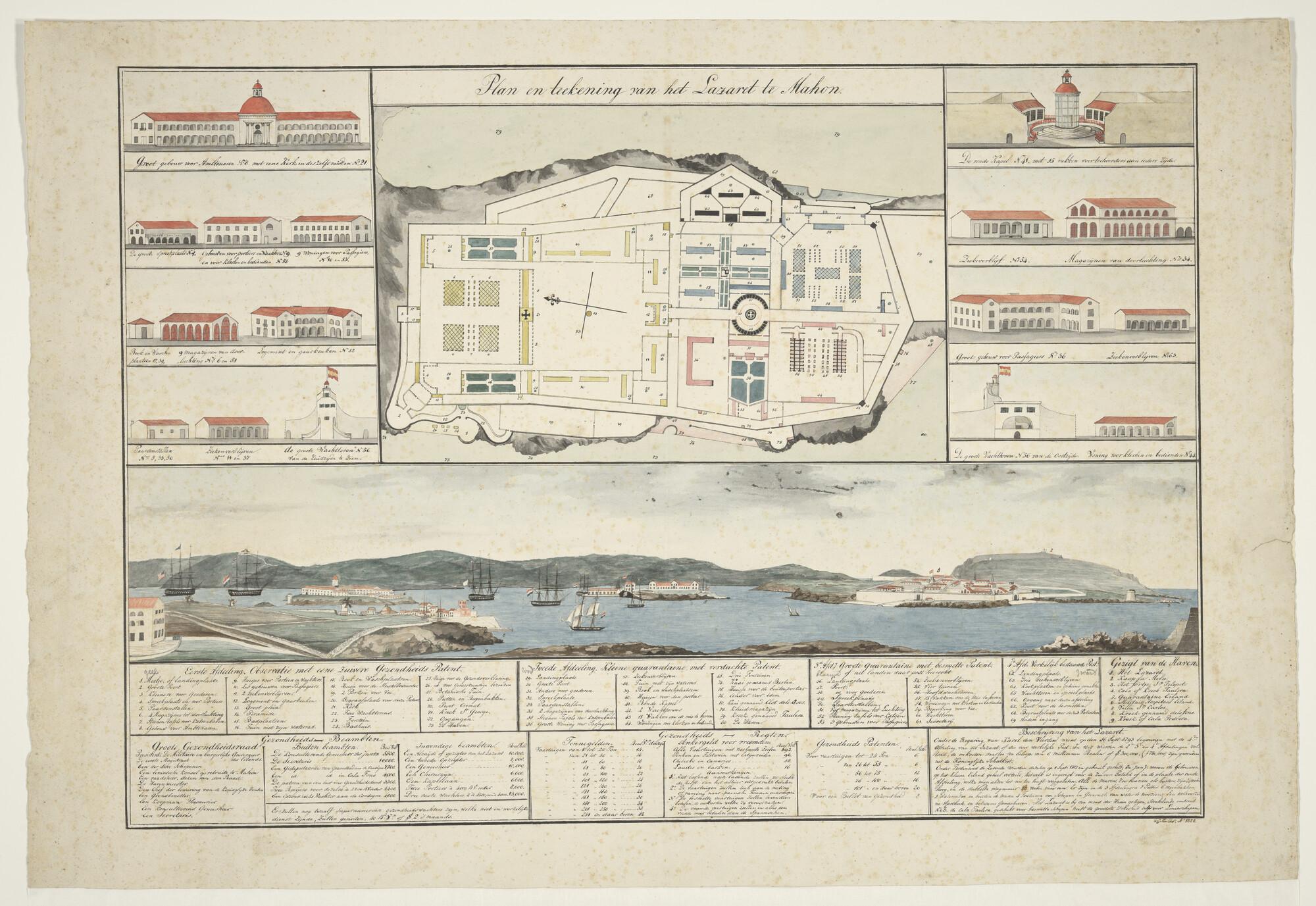 Grondplan en opstand van het Lazaret te Port Mahon.