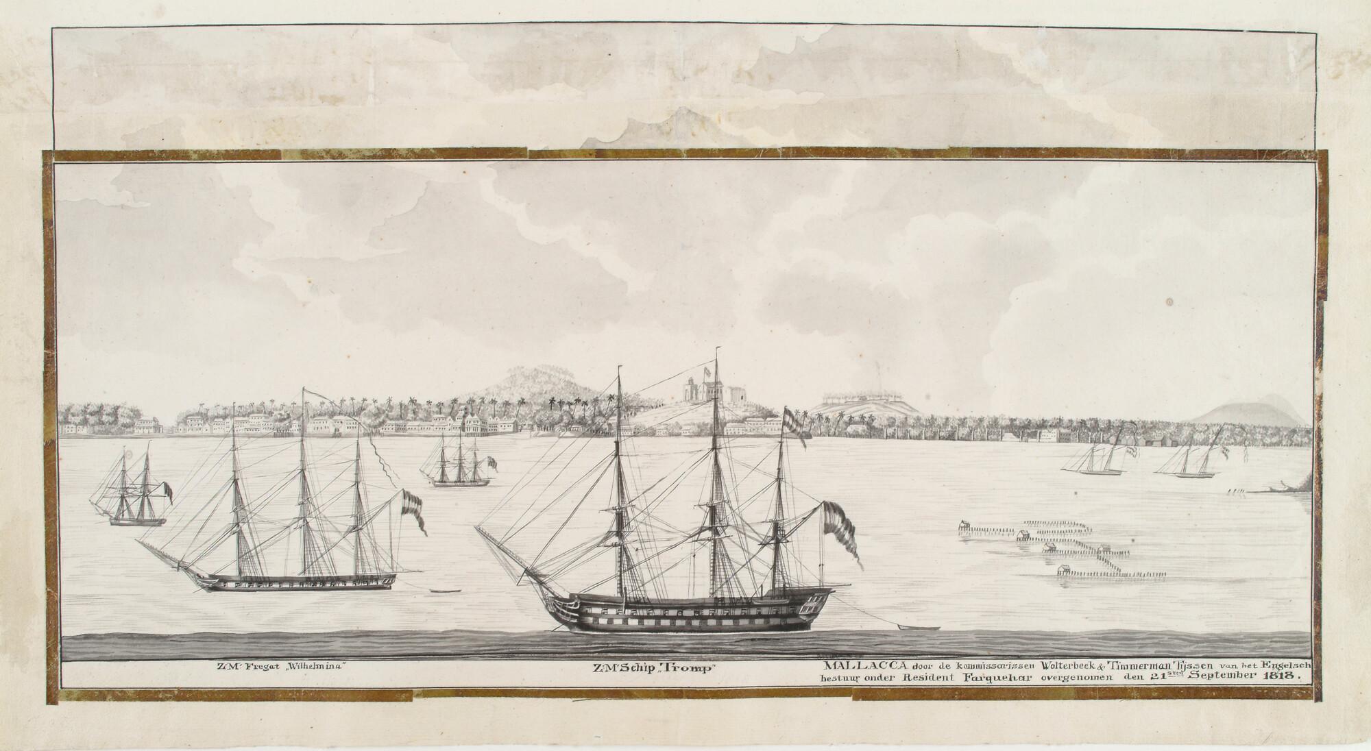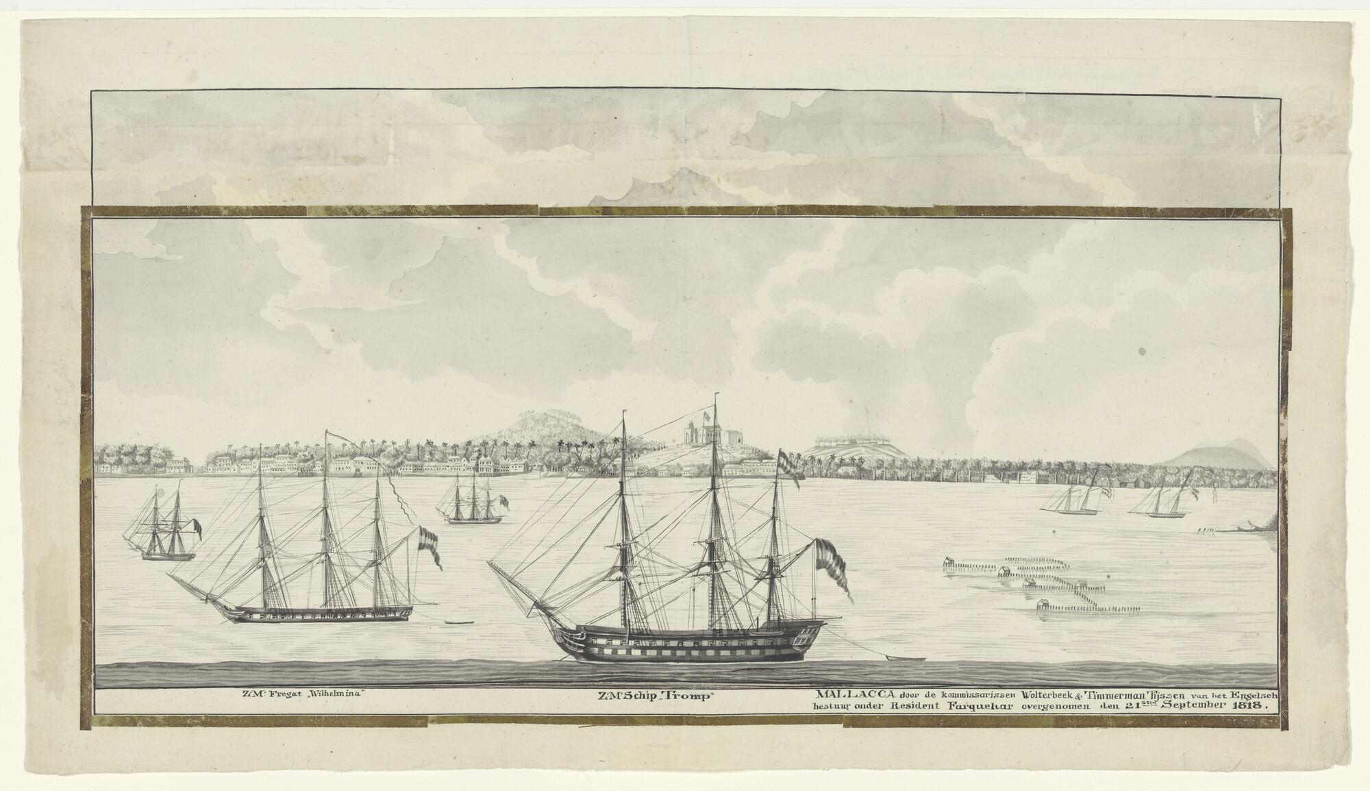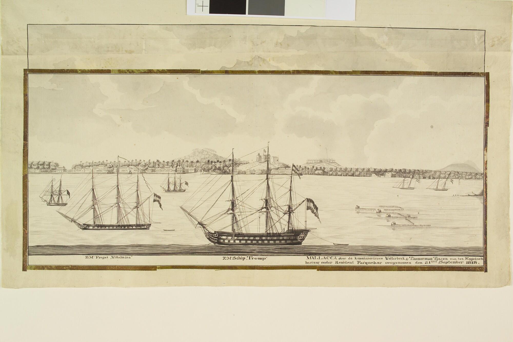 De oorlogsschepen 'Tromp' en 'Wilhelmina' ter rede van Malakka, 1818
