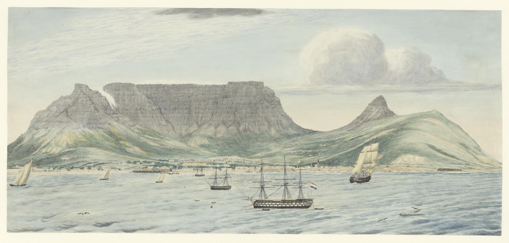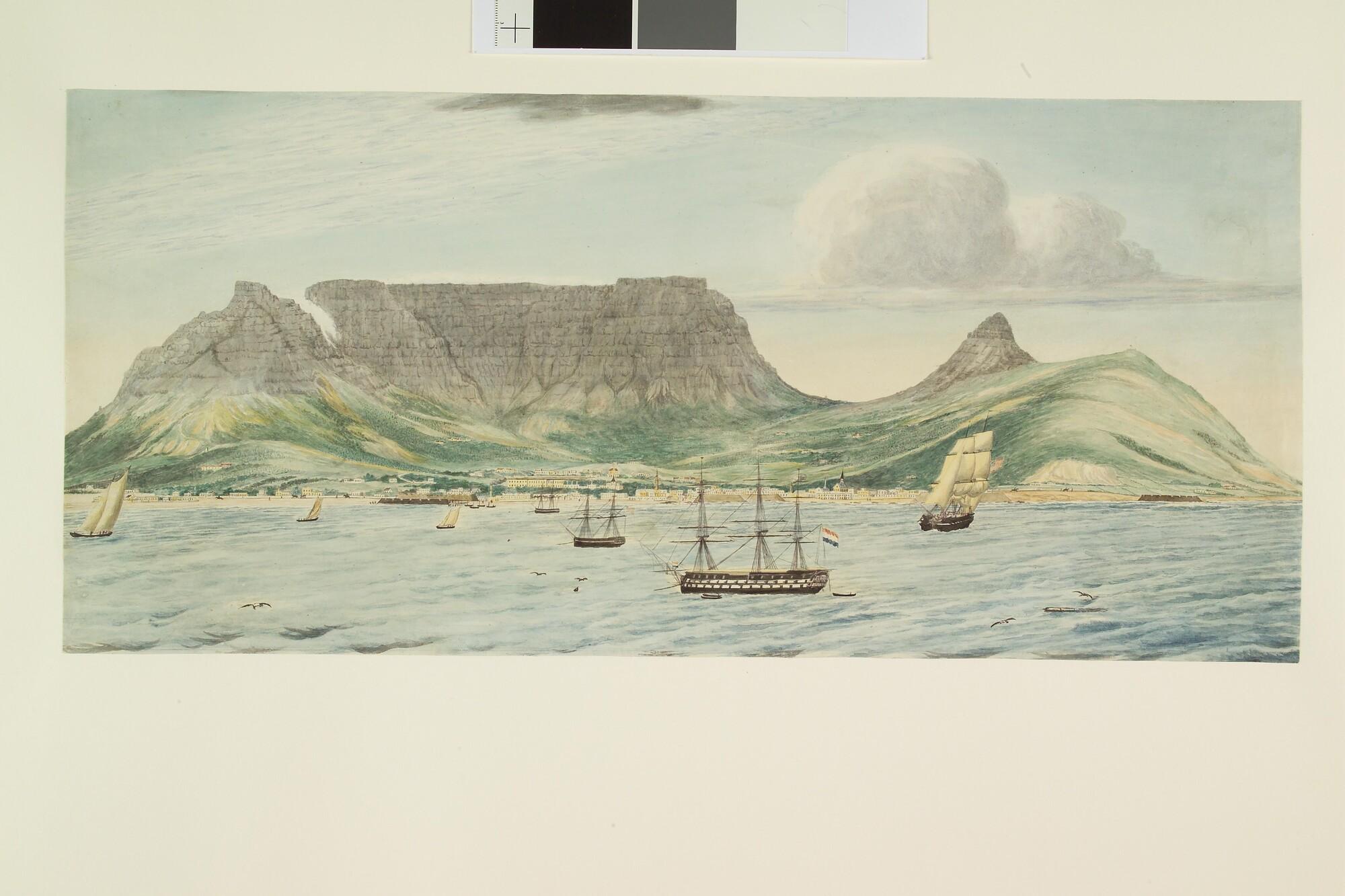 Het linieschip Zr.Ms. Prins Frederik ter rede van Kaapstad