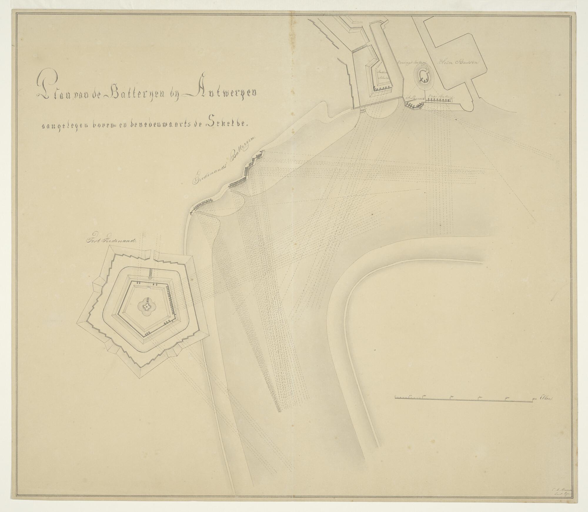 Manuscriptkaart van de ligging der batterijen bij Antwerpen