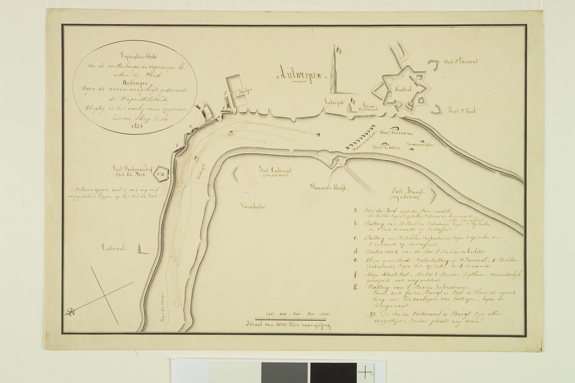 Manuscriptkaart van de militaire versterkingen onder Antwerpen, 1831