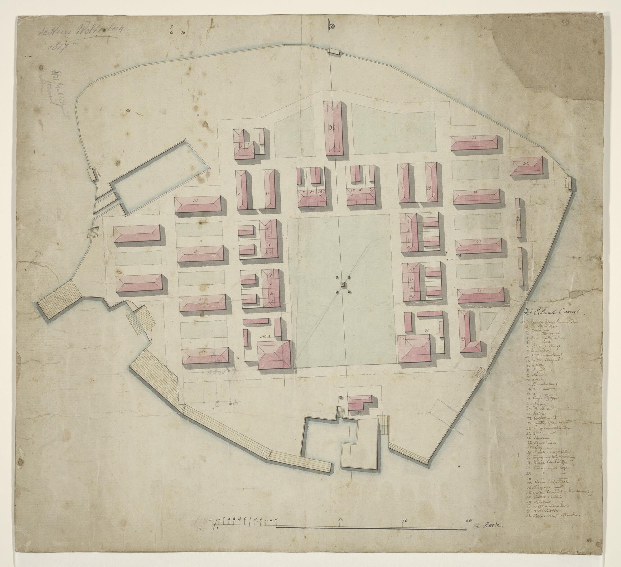 Plattegrond van het eiland Onrust omstreeks 1817.