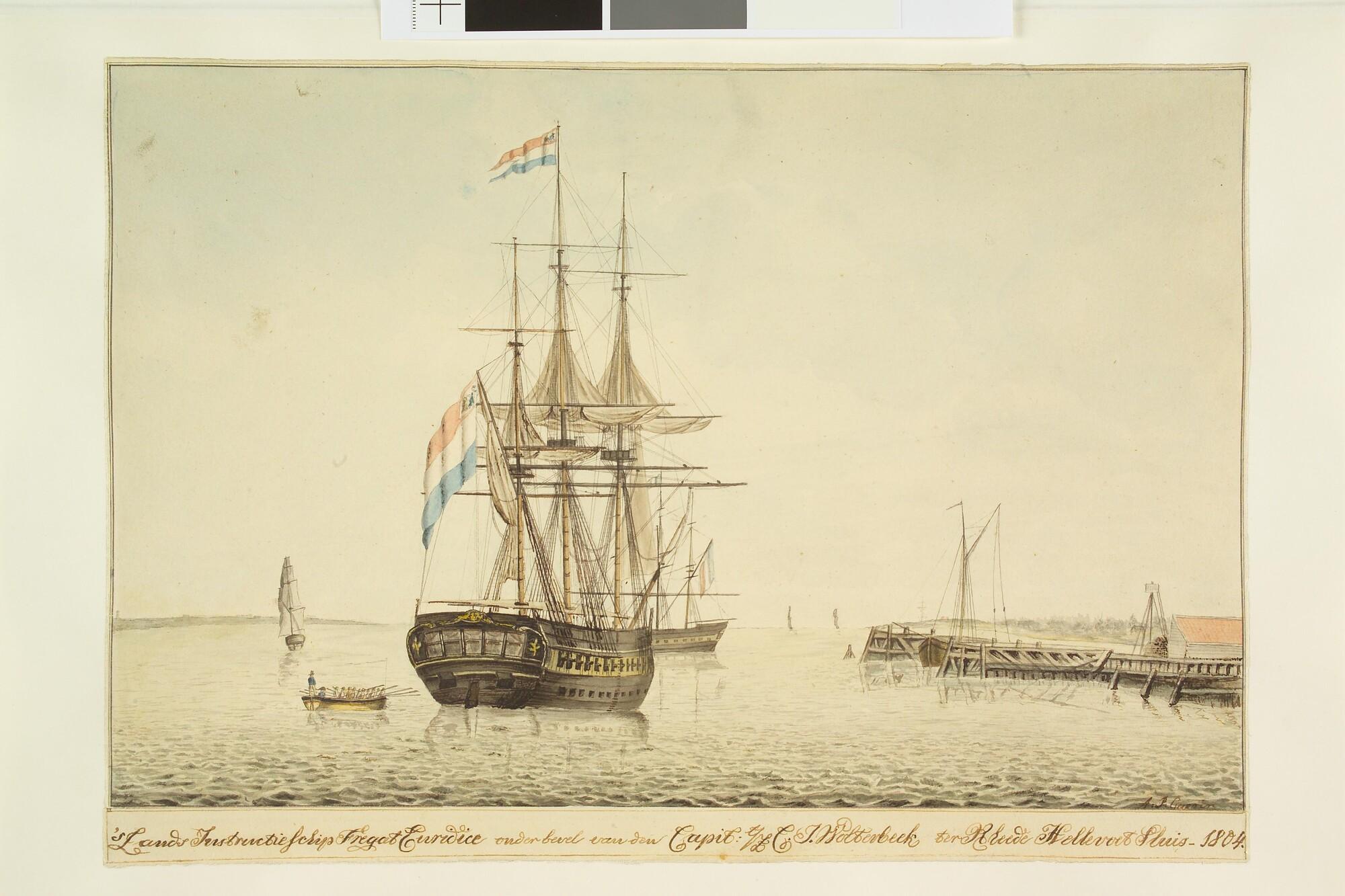 Het instructieschip Zr.Ms. "Euridice" ter rede van Hellevoetsluis, 1804.