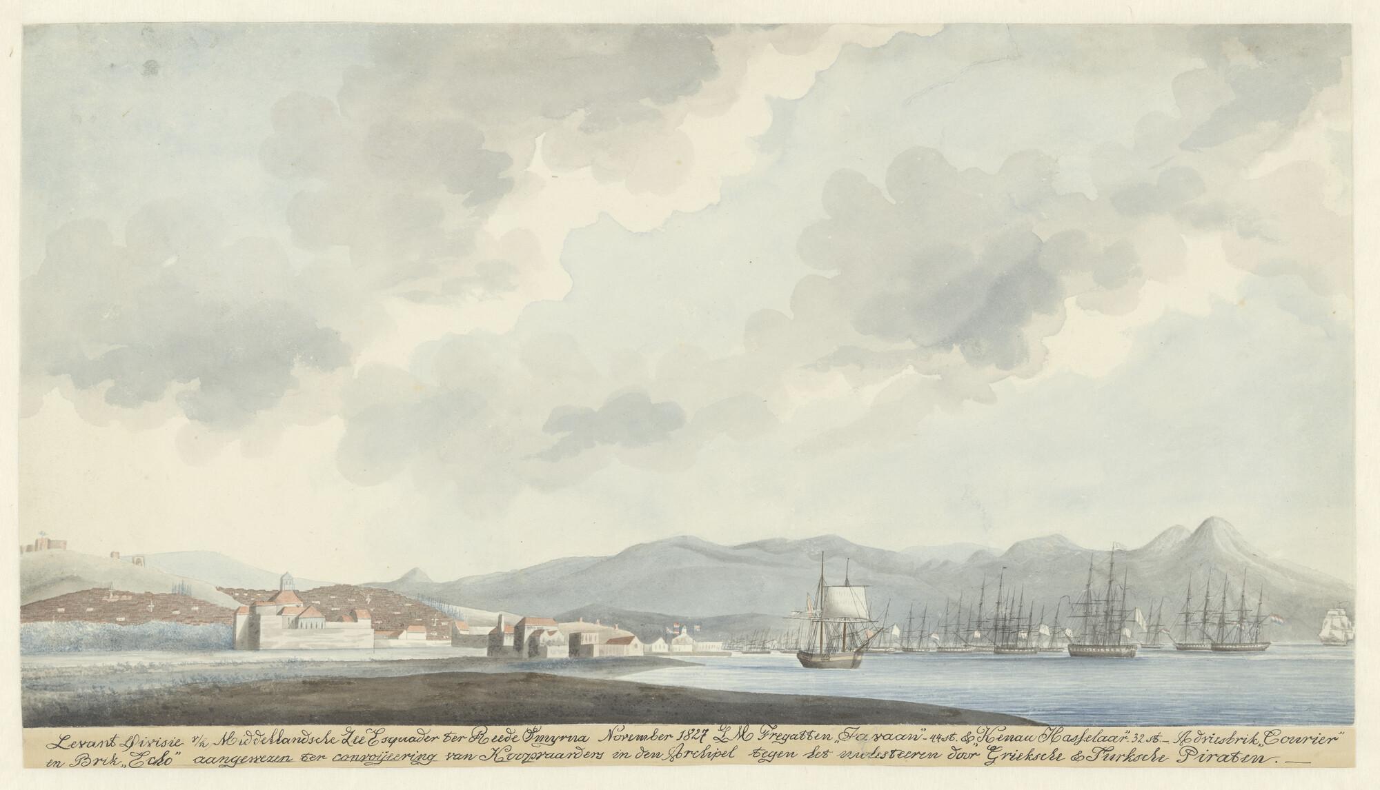 De Levant Divisie van het Nederlandse Middellandse Zee Eskader ter rede van Smyrna.