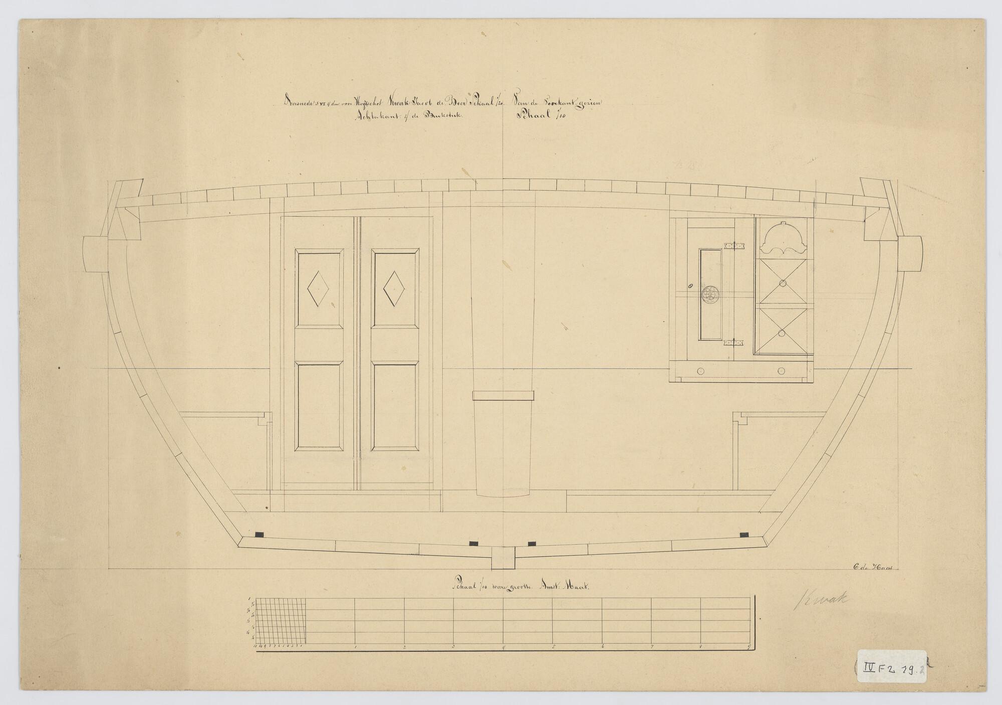 Technische tekening van Volendammer Kwak (1876) 54 x 16.1 x 7¼ voet